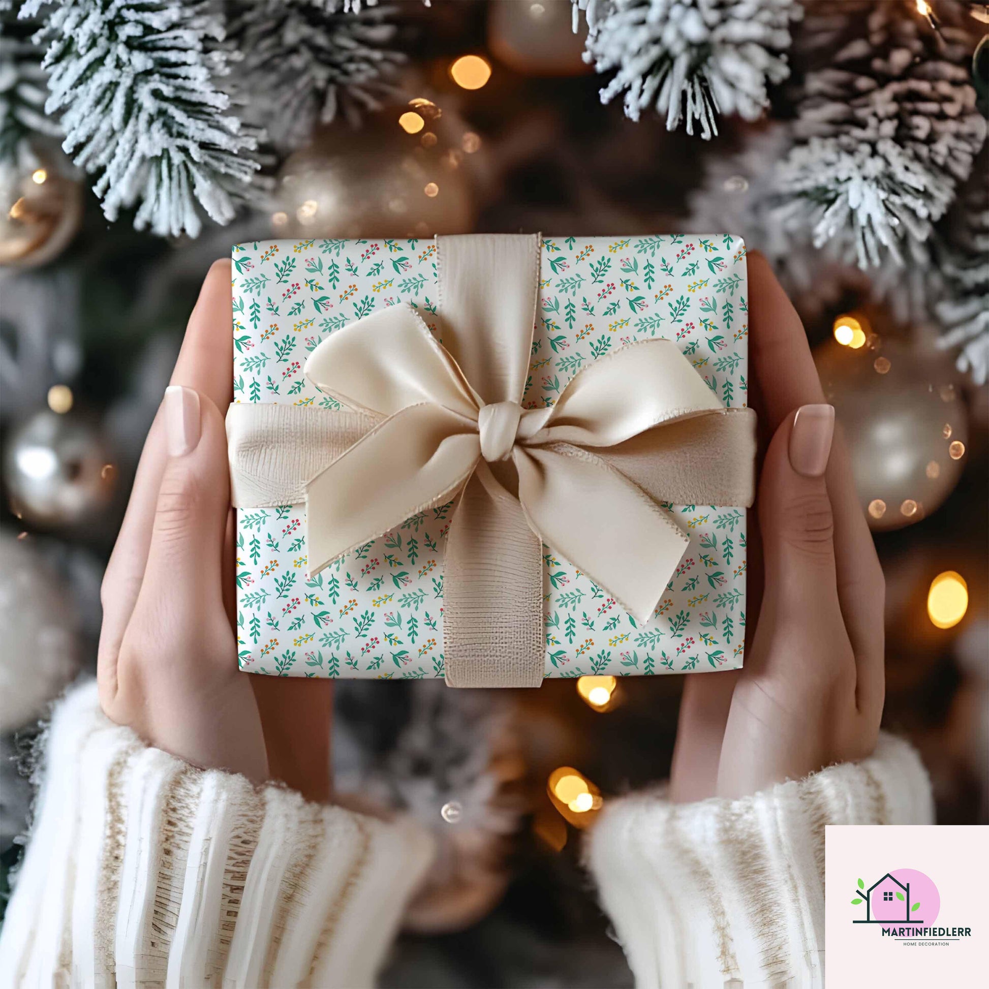 Botanical Christmas Wrapping Paper, Green Leaf Berry Holiday Gift Wrap Sheets, Festive Xmas Botanical Packaging, Winter Party Gift Wrap