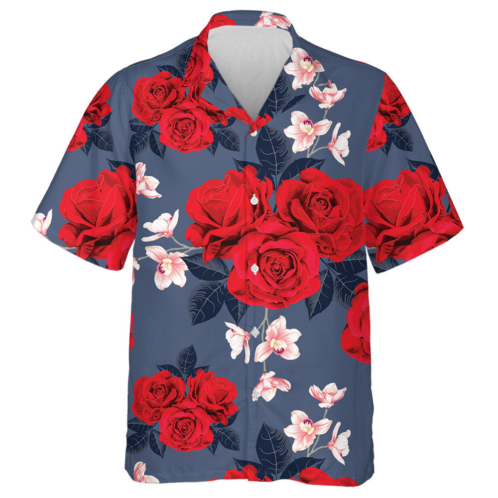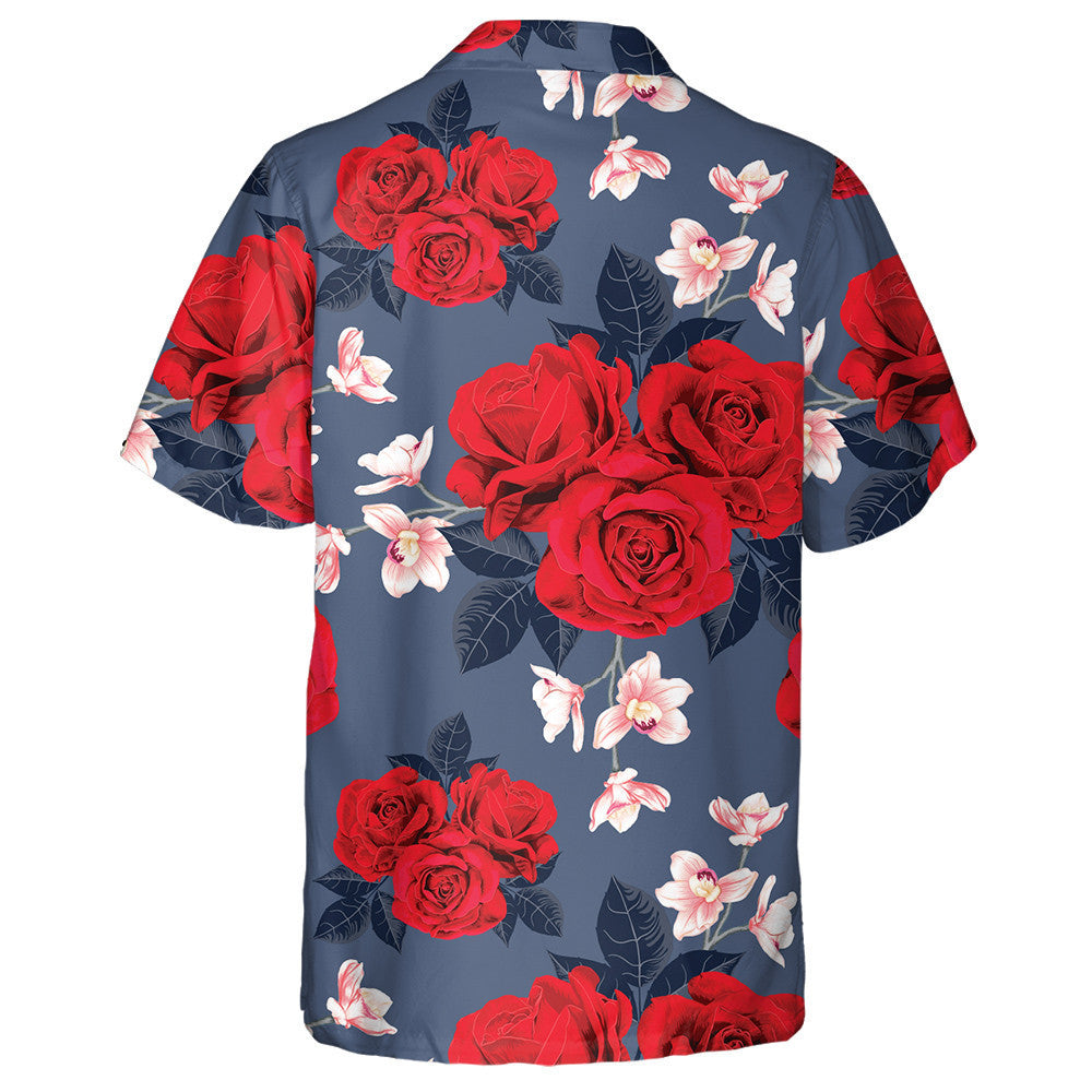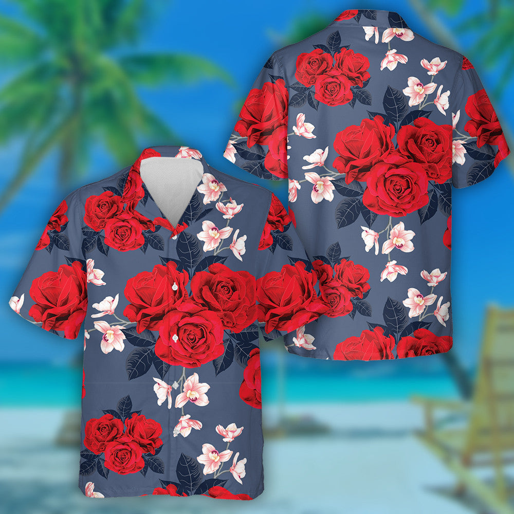 Scarlet Botanical Scarlet Red Rose Pink Flower Branch Dearadh Léine Haváís, Bronntanas Léine Haváíais, Bronntanas Nollag