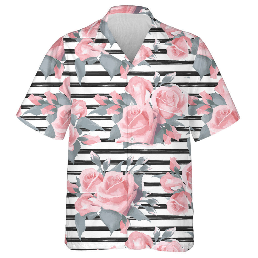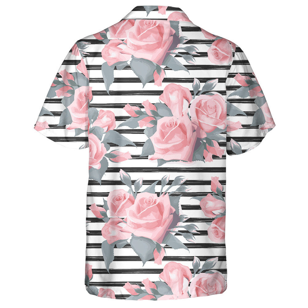 Bouquet Pale Roses Pink Bláthanna Dearadh Striped Dubh Léine Haváís, Bronntanas Léine Haváís, Bronntanas Nollag