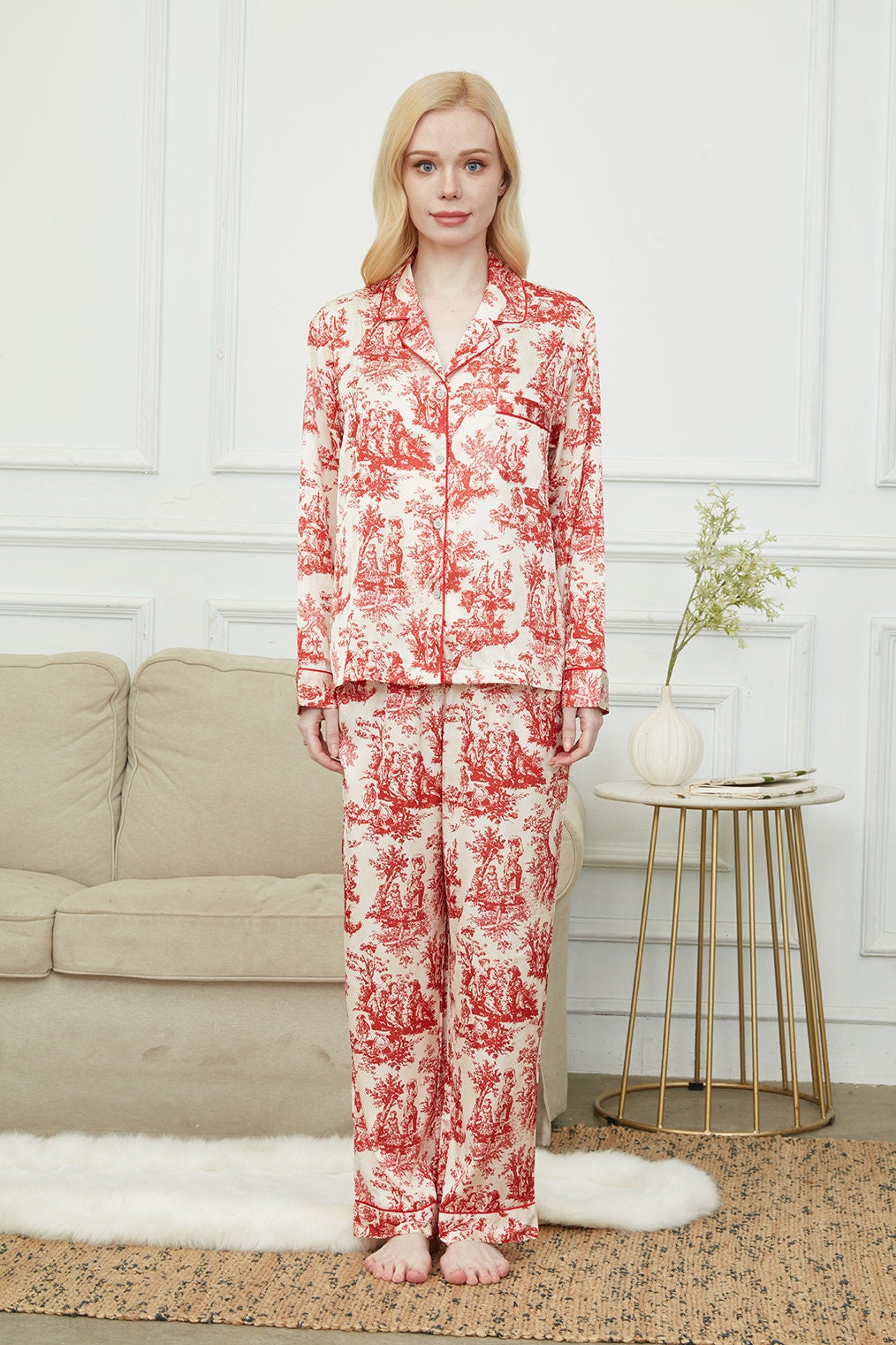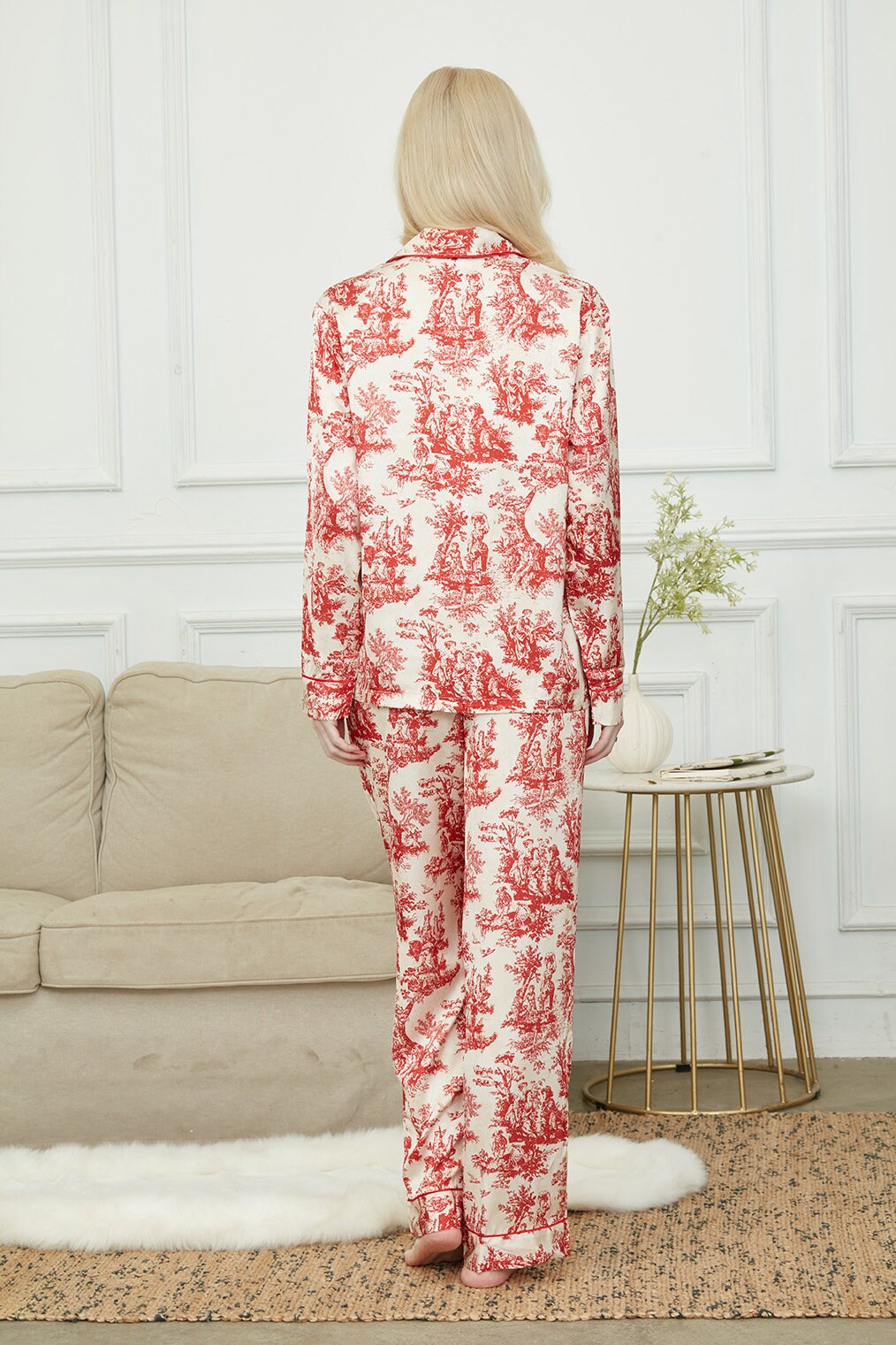 Bride And Bridesmaids Pajama, Pajama Set For Women,Red Of The Evening ,Soft Silky Polyester, Gift For Her, Personalized Gift For Bridesmaids