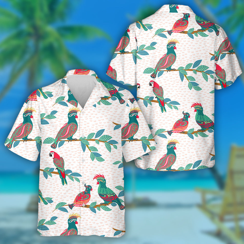 Parrots Éan Geal le Ornáidí Suí Ar Na Brainsí Léine Haváís, Bronntanas Léine Haváís, Bronntanas Nollag