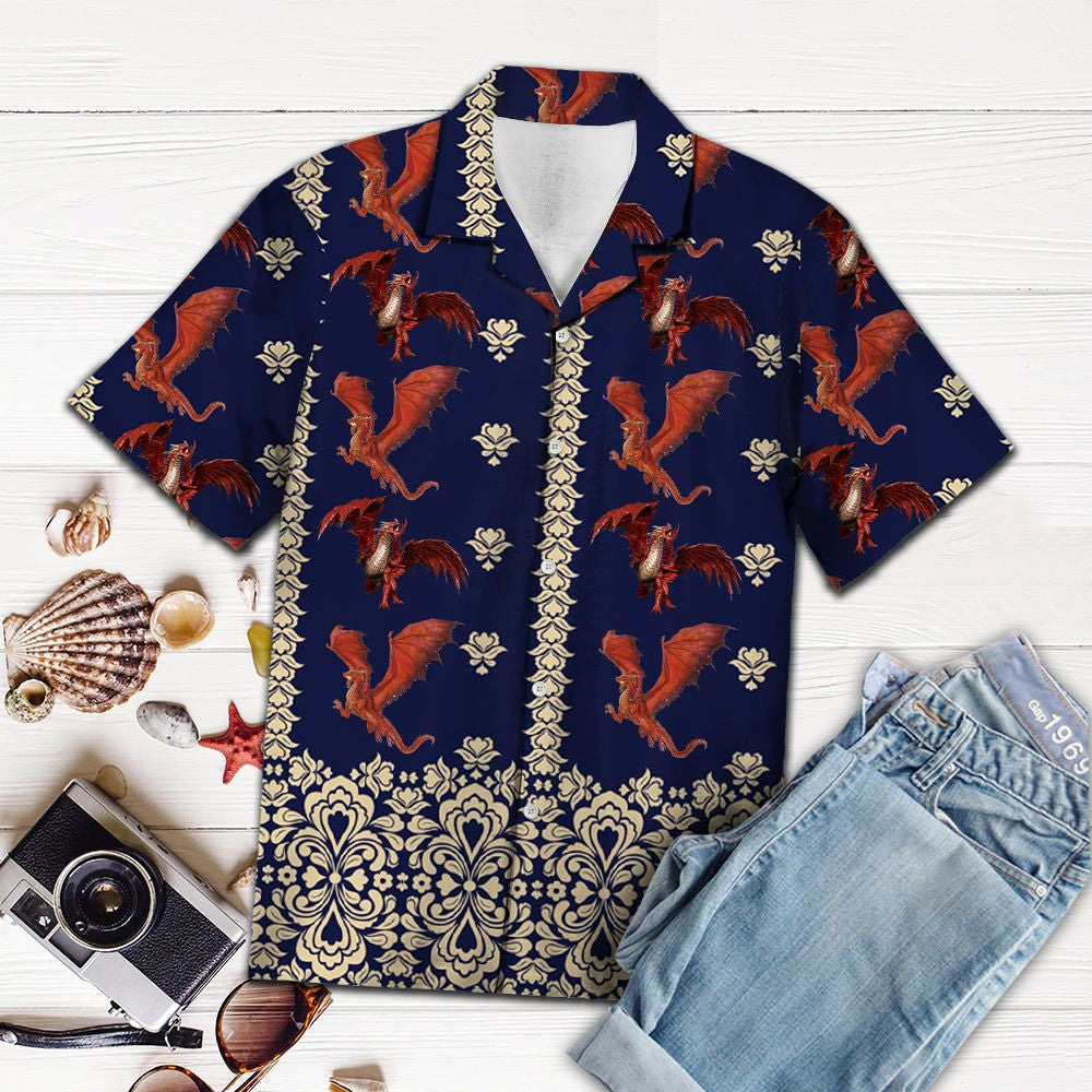 Dragon Donn Le Ealaín Shiombaileach I nDearadh Gorm Léine Haváís, Bronntanas Léine Haváíais, Bronntanas Nollag