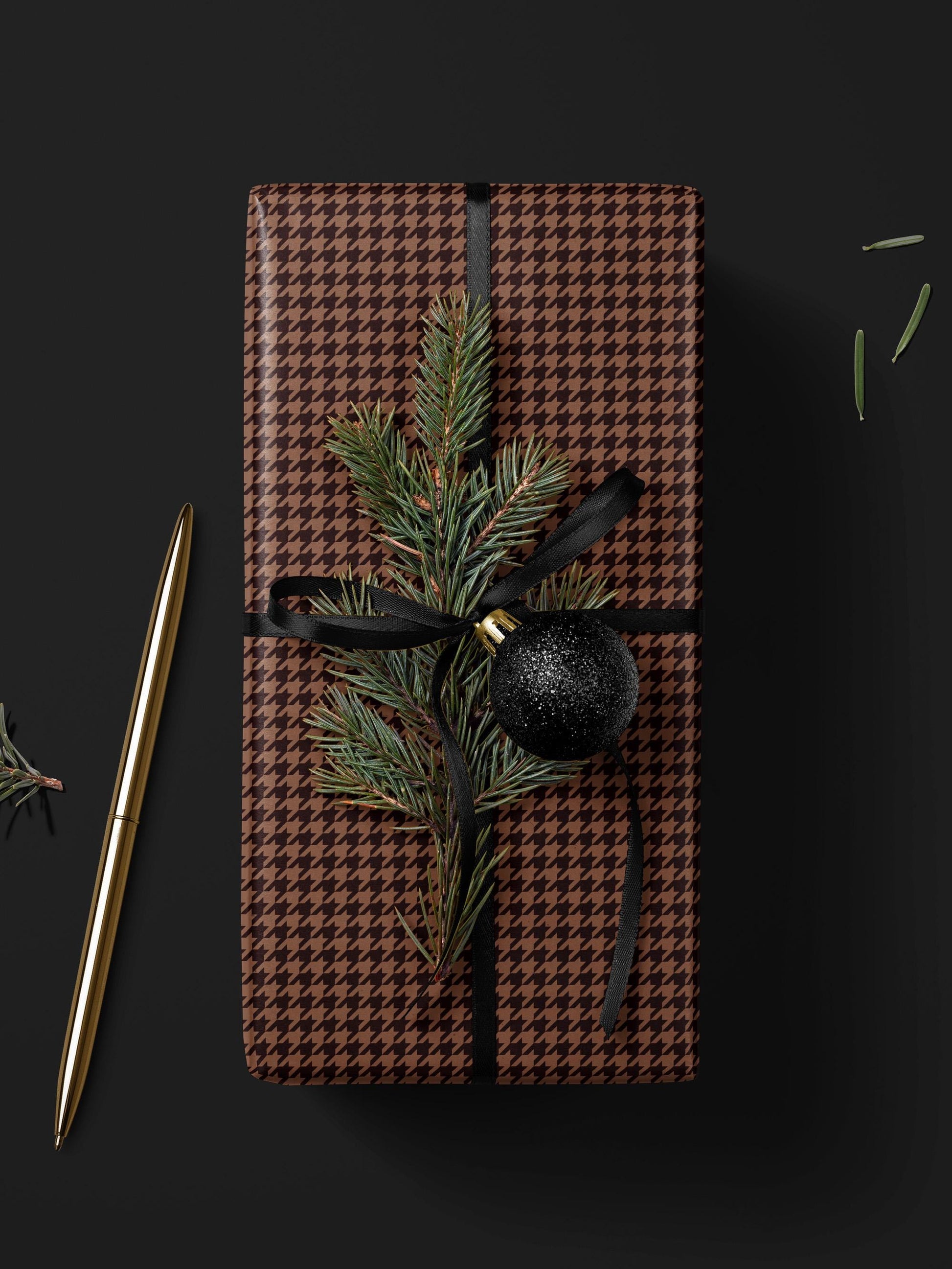 Brown Houndstooth Gift Wrap Birthday Wrapping Paper Idea Baby Shower Gift Wrap Chic Wrapping Paper Roll Moody Christmas Gift Wrap Idea