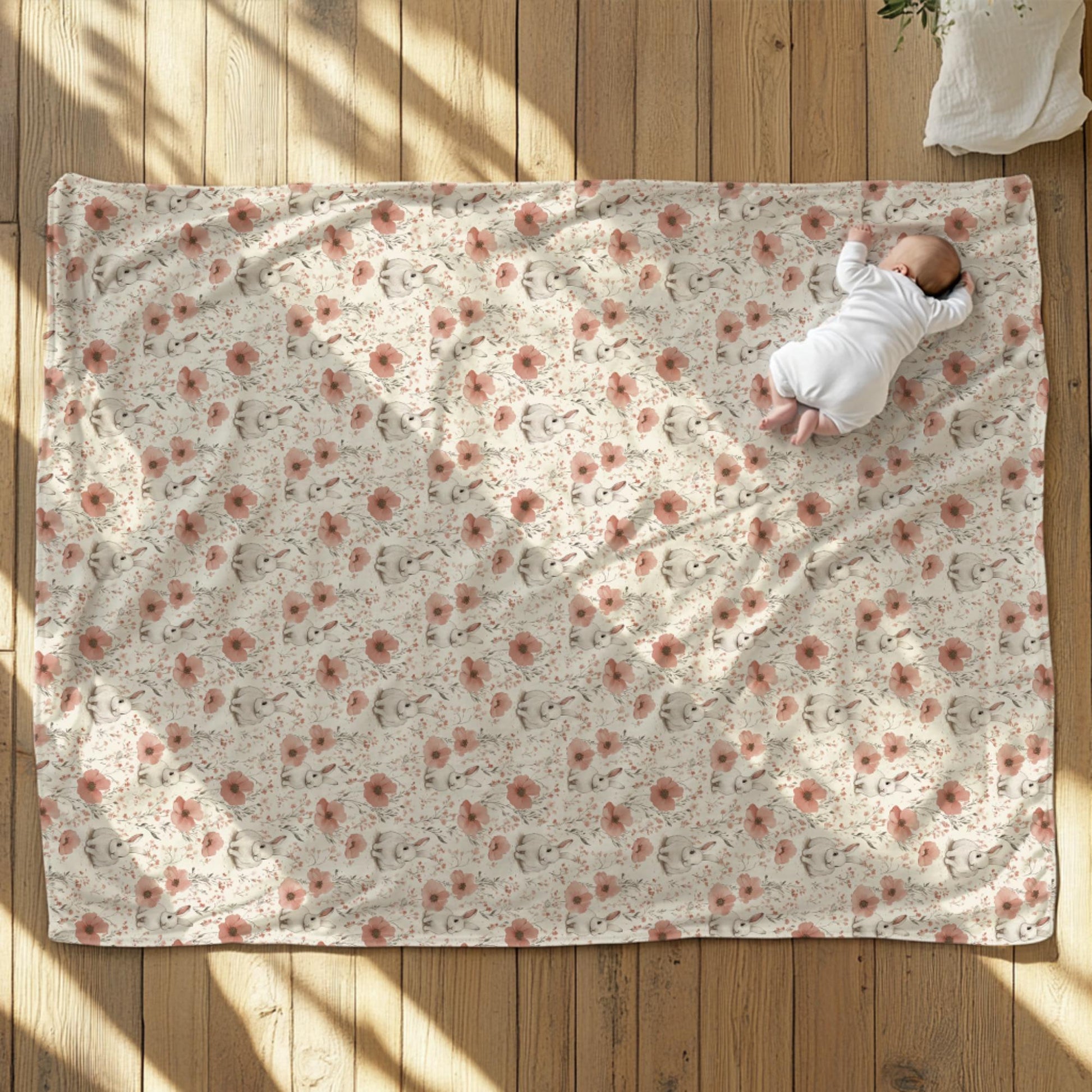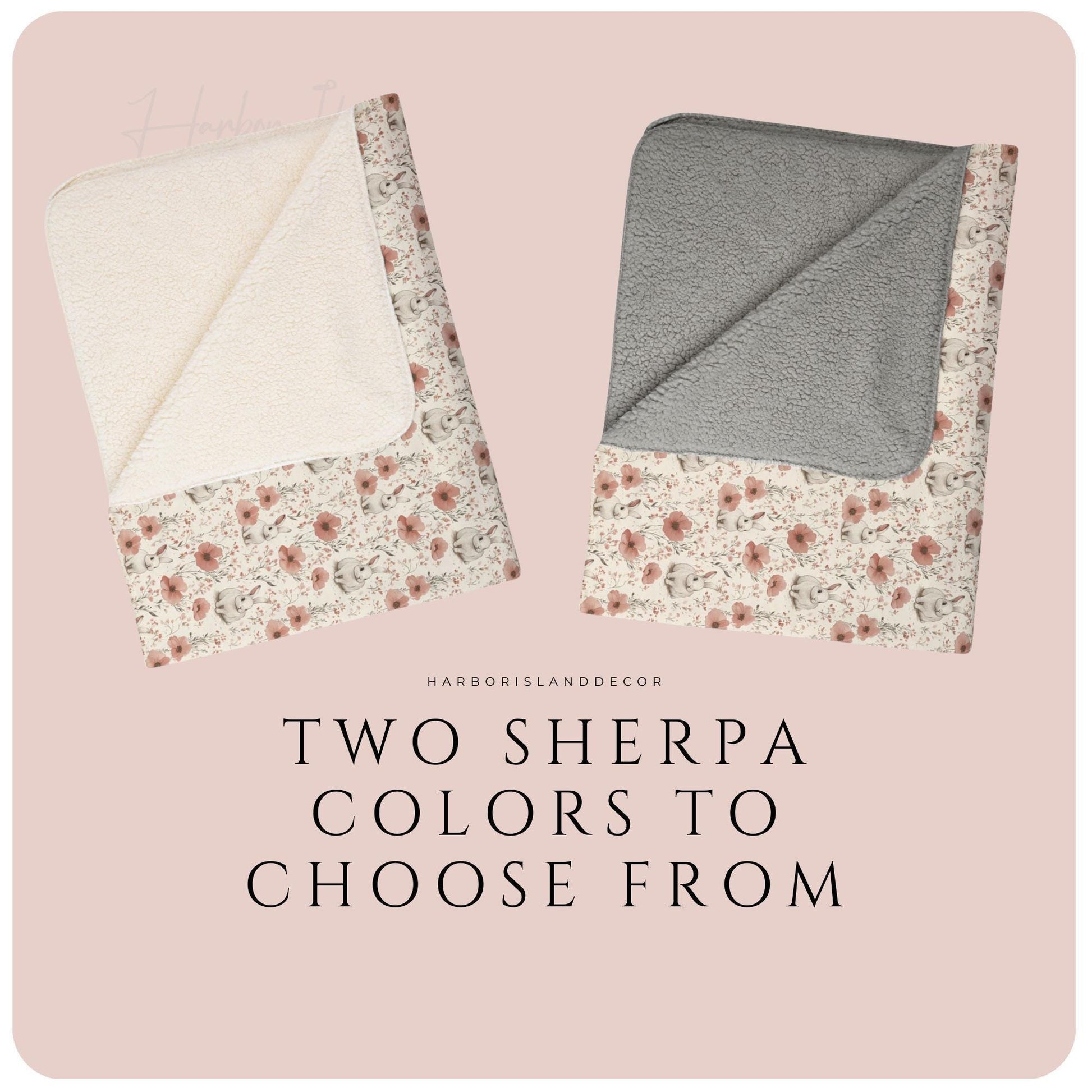 Bunny Floral Sherpa Blanket - Soft Cozy Throw for Kids & Adults - Nursery Decor - Cute Rabbit Blanket Gift by Harbor Island Decor