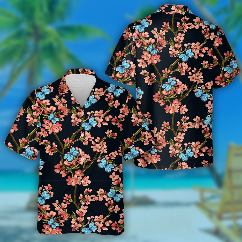Féileacáin Le Bláthanna Trópaiceacha Seapánacha Léine Earraigh Haváís, haváís le haghaidh bronntanais