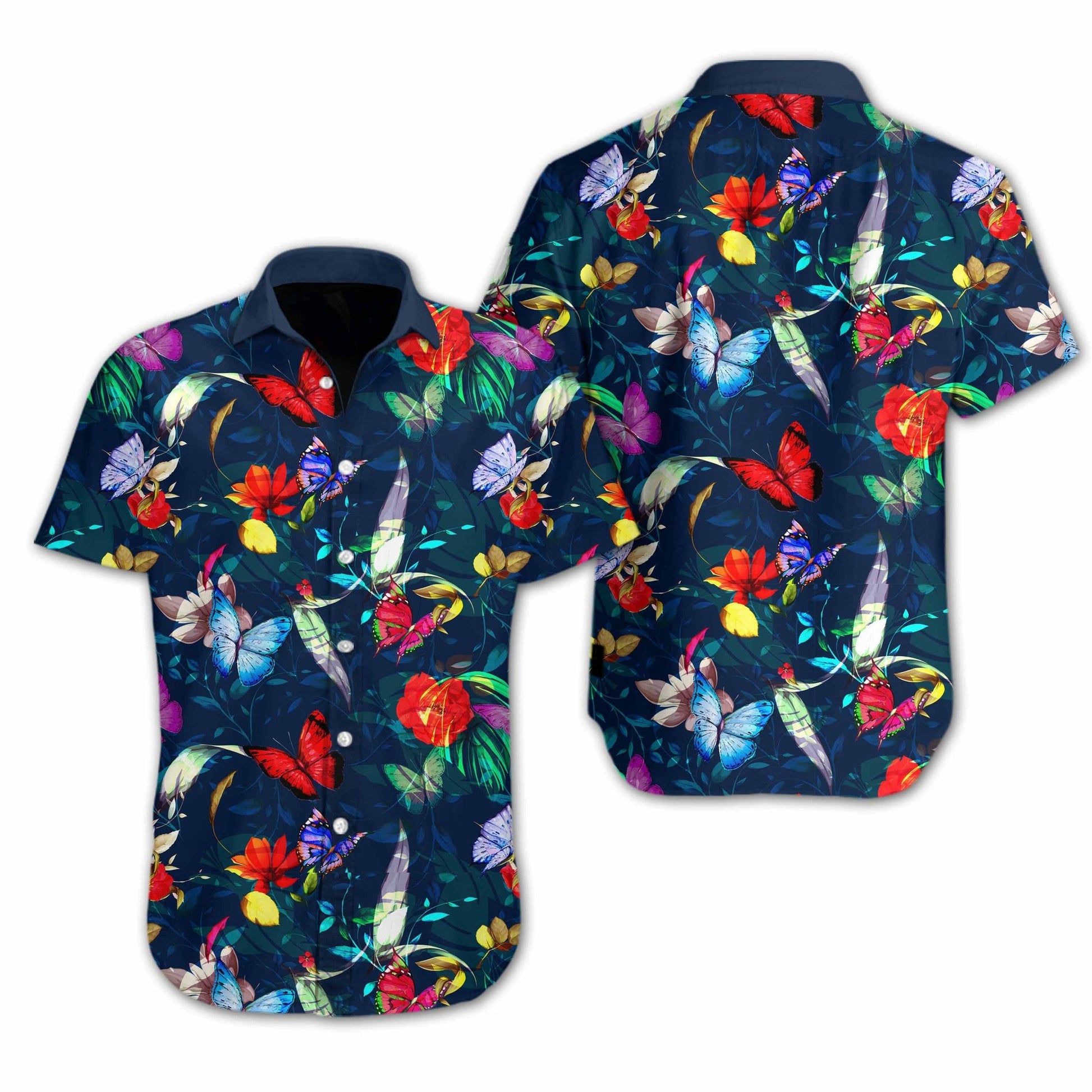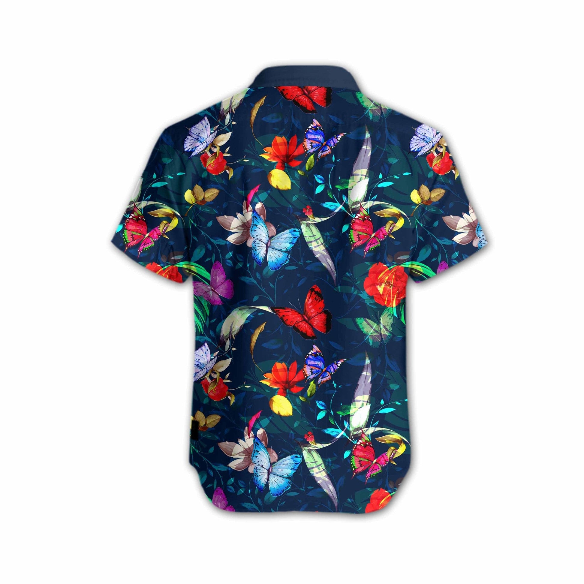 Bláth Butterly Ar Dhearadh Gorm Dorcha Léine Haváís, Haváis Don Bronntanas