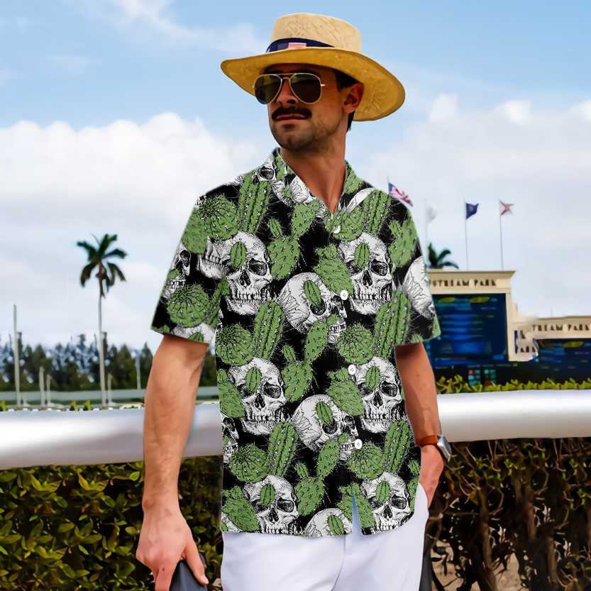 Cactus Skull On Black Design Léine Haváís, Bronntanas Léine Haváíais, Bronntanas Nollag