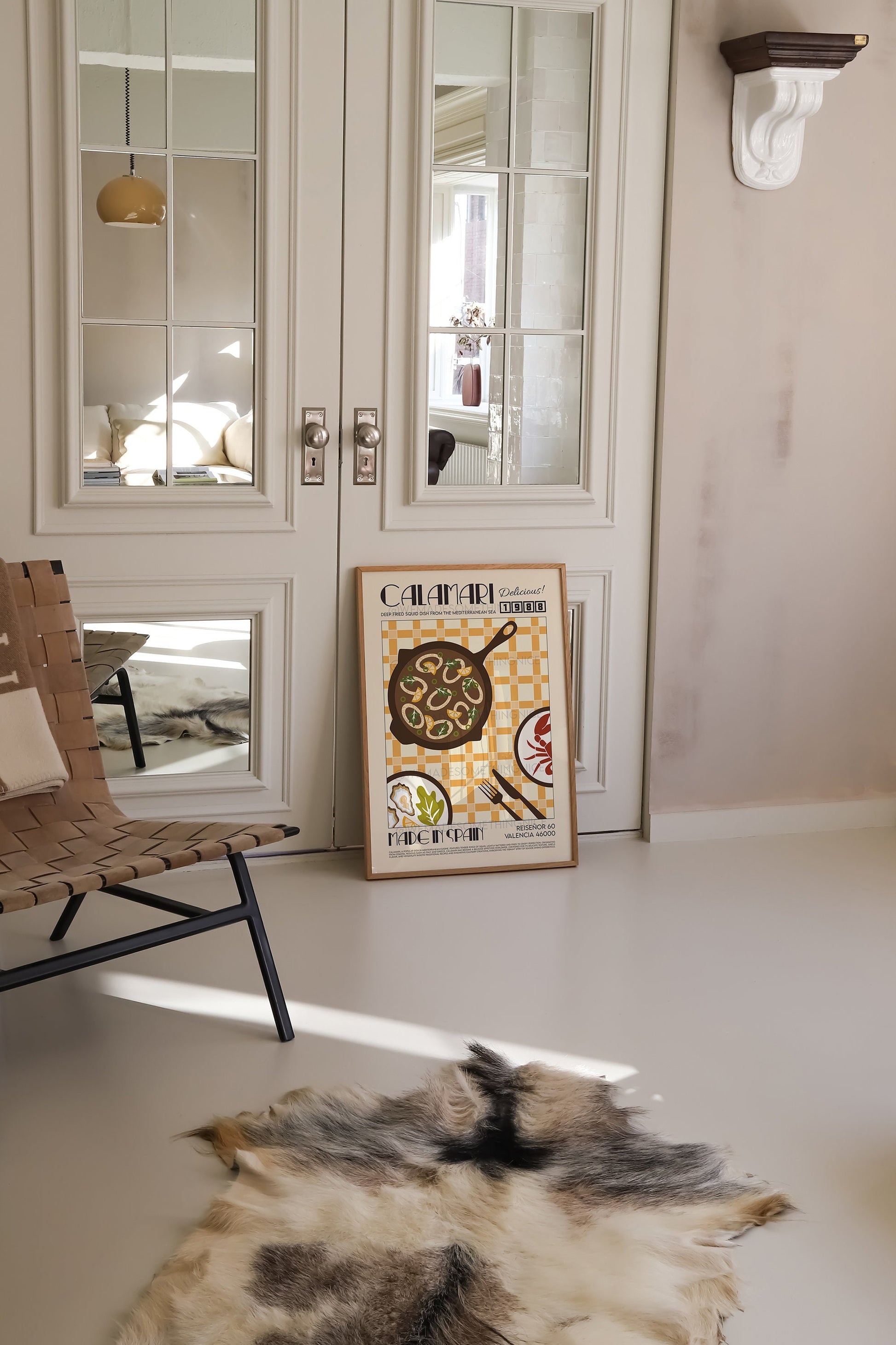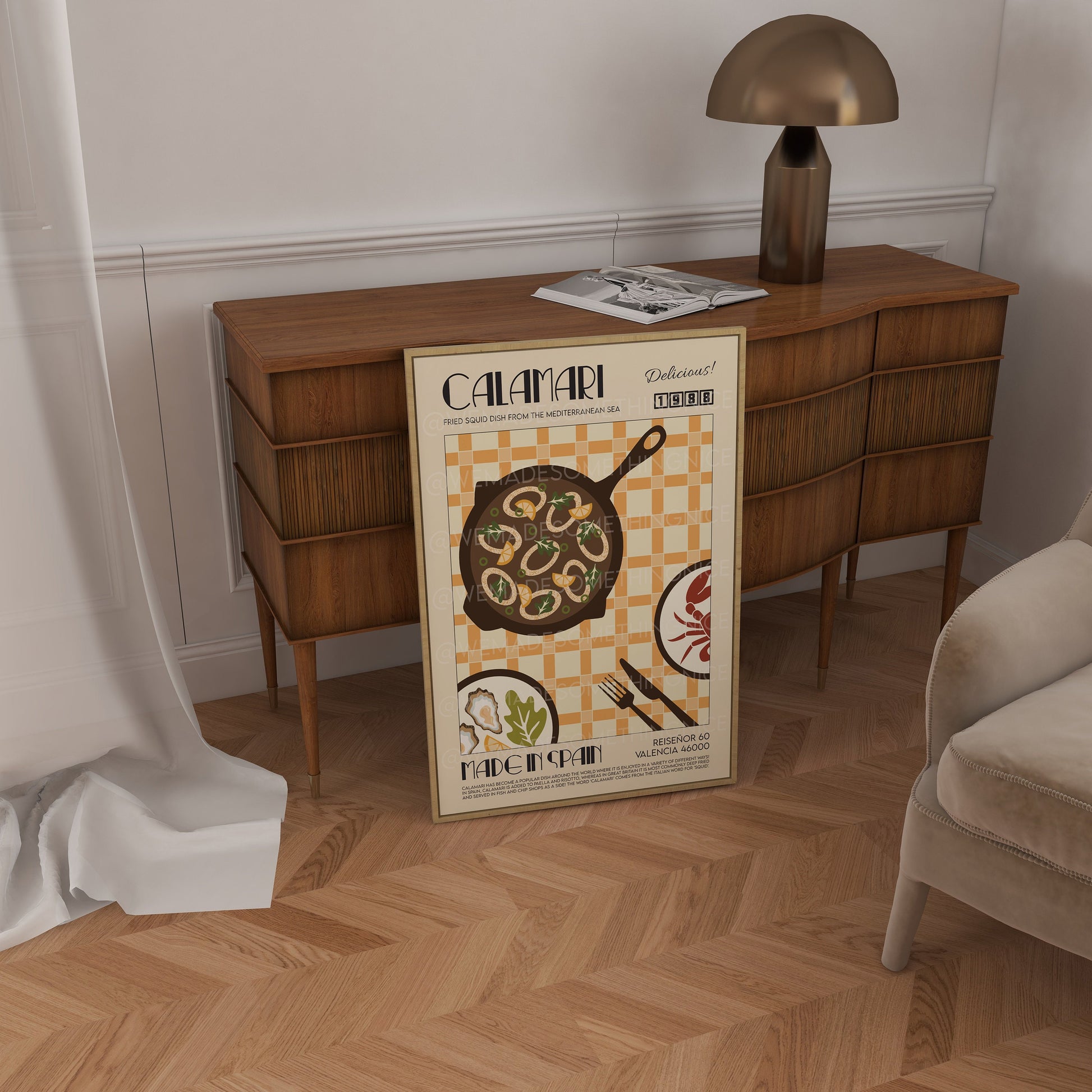 Calamari Print, Kitchen Art, Food Poster, Food Illustration, Kitchen Decor, Food Art, Mid Century Modern, Eat Sign, Trendy Wall Art