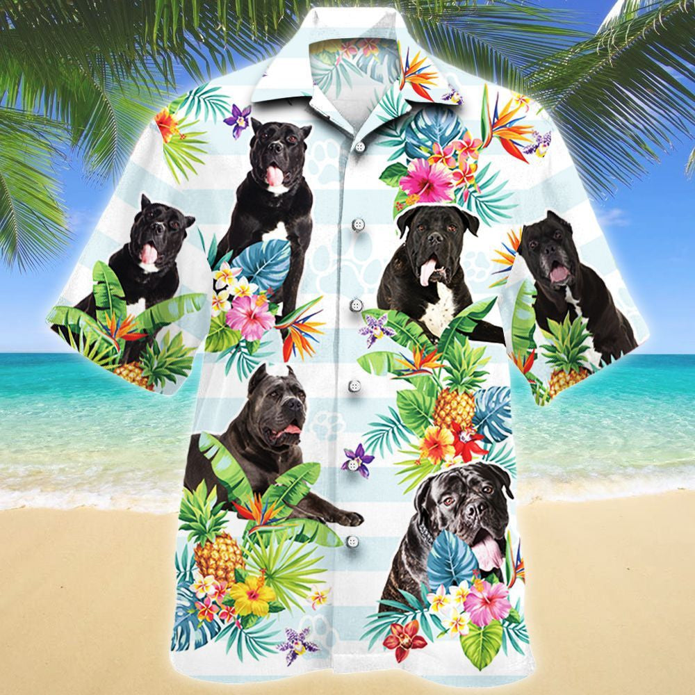 Bláth Trópaiceach Madra Canna Corso Léine Haváí Stiall Cothrománach, Bronntanas Léine Haváís, Bronntanas Nollag