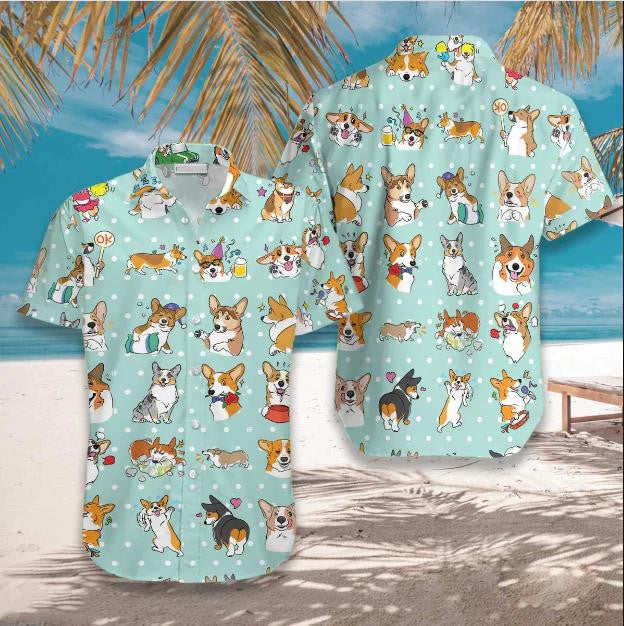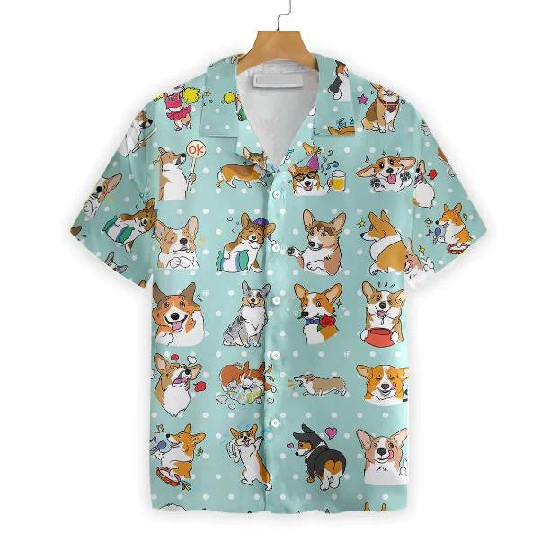 Cartún Cuimhneacháin gleoite na Breatnaise Corgi Patrún Spota Léine Haváís, Bronntanas Léine Haváís, Bronntanas Nollag