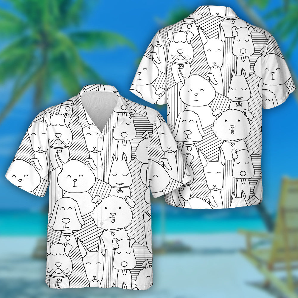 Cúlra Scoite Madra Doodle Cartún Tarraingthe Láimhe Léine Haváís, Bronntanas Léine Haváíais, Bronntanas Nollag