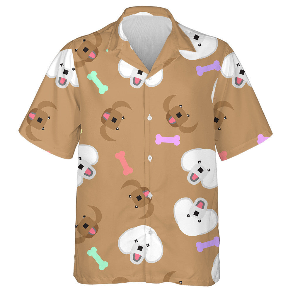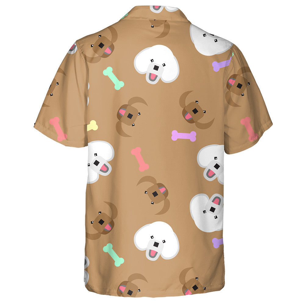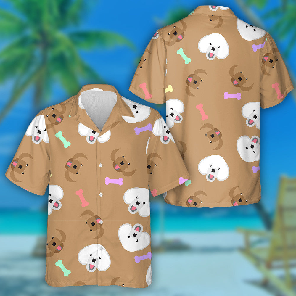 Deilbhíní Cartún Madra agus Cnámh Poodle Ar Léine Haváis Donn, Bronntanas Léine Haváíais, Bronntanas Nollag