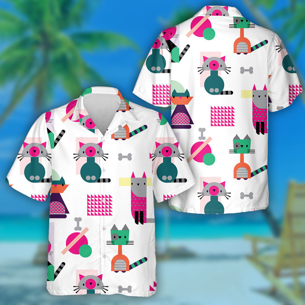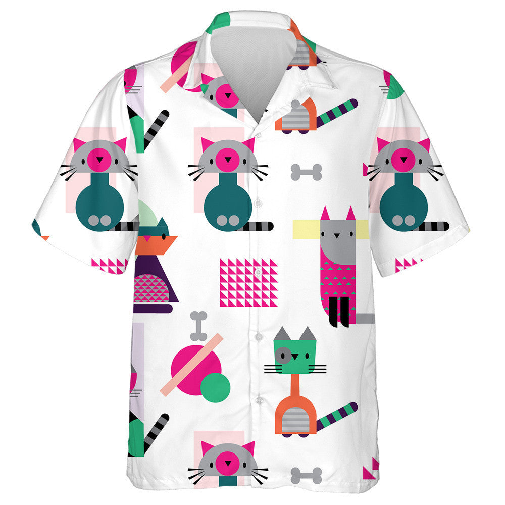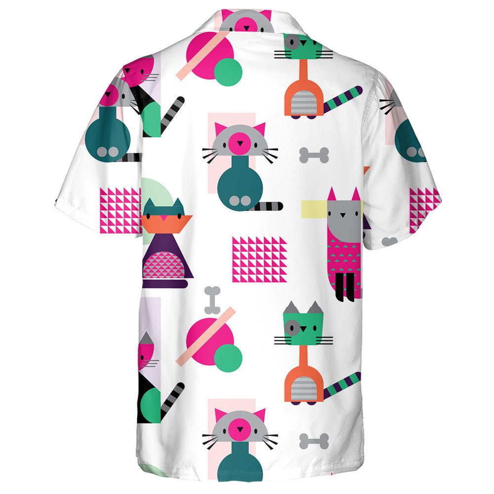 Stíl Cartúin Abstract Cat Cruth Geoiméadrach Ainmhithe Léine Haváís, Bronntanas Léine Haváíais, Bronntanas Nollag