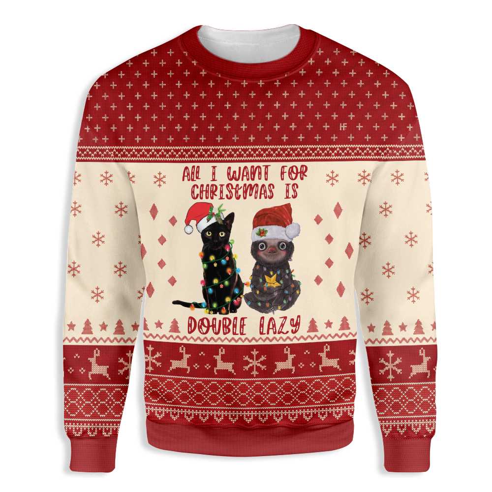 Is Cat Dúbailte Leisciúil é Cat agus Geansaí Nollag gránna, geansaí Nollag gránna, bronntanas Nollag, bronntanas Nollag 2022.