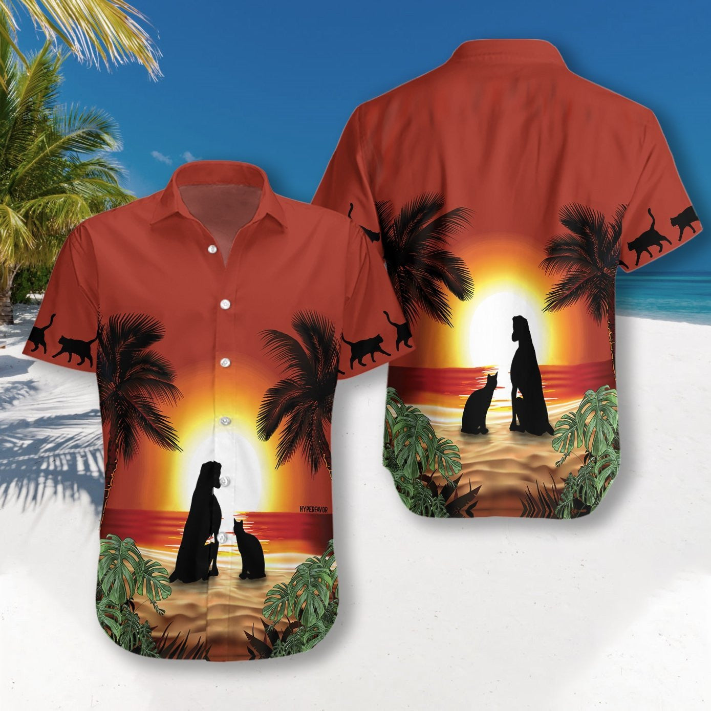 Cat Agus Madra i Luí Álainn na Gréine Cara is Fearr Léine Haváís, Bronntanas Léine Haváíais, Bronntanas Nollag