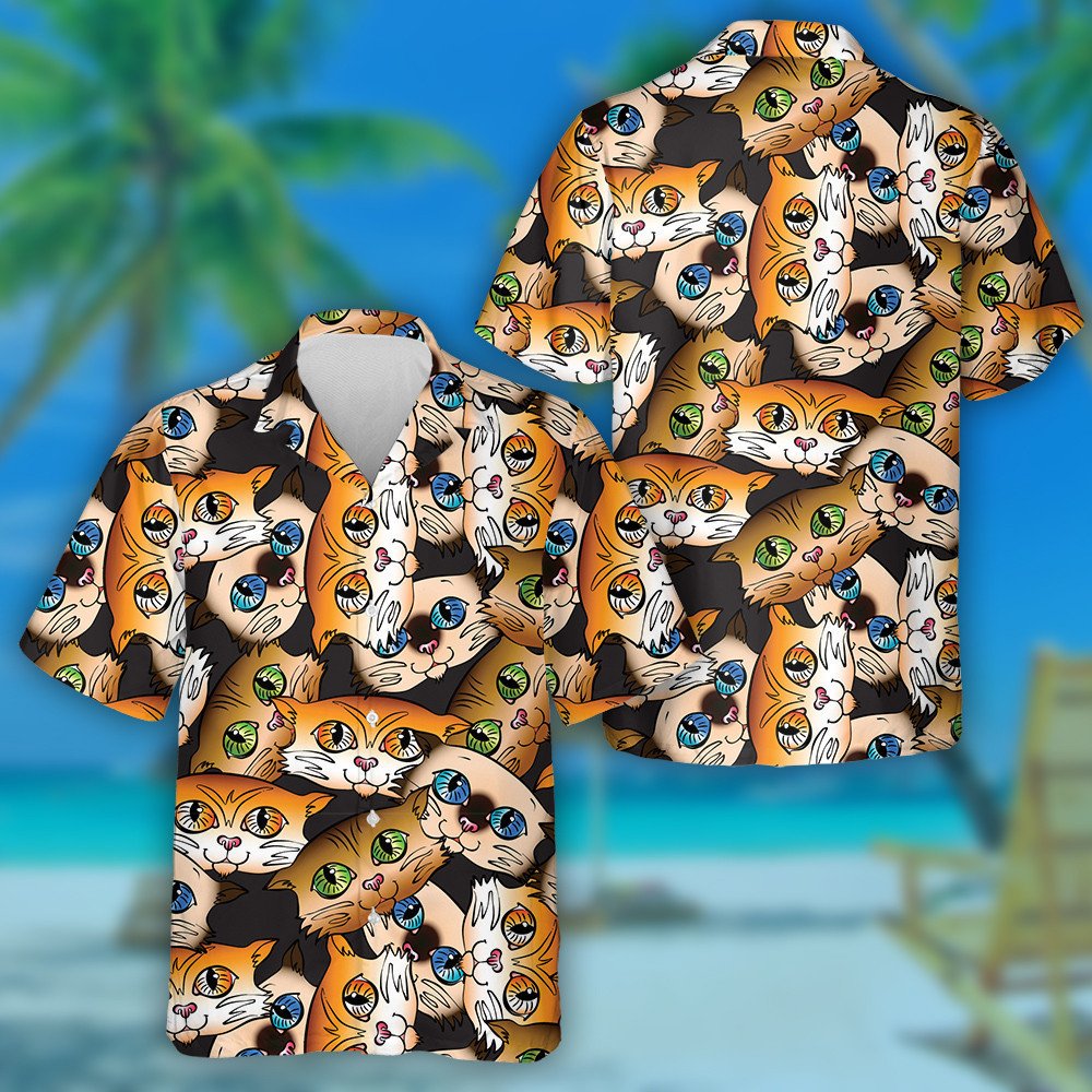 Cait leis na Súile Glasa Agus Buí Ar Chúlra Donn Léine Haváí, Bronntanas Léine Haváíais, Bronntanas Nollag