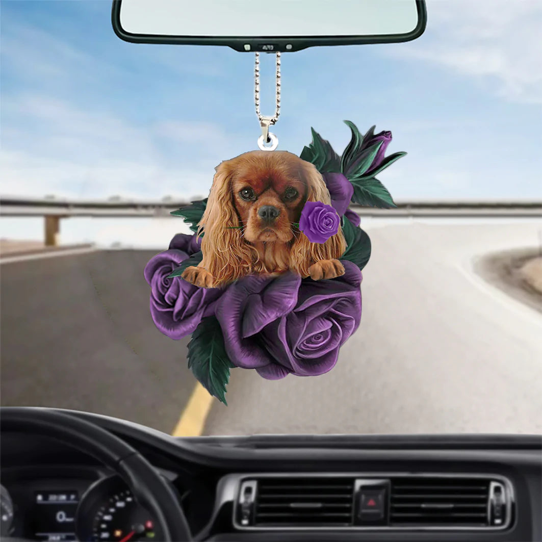 Cavalier King Charles Spaniel In Ornáid Crochta Gluaisteán Corcra - Bronntanais is Fearr don teaghlach ar fad