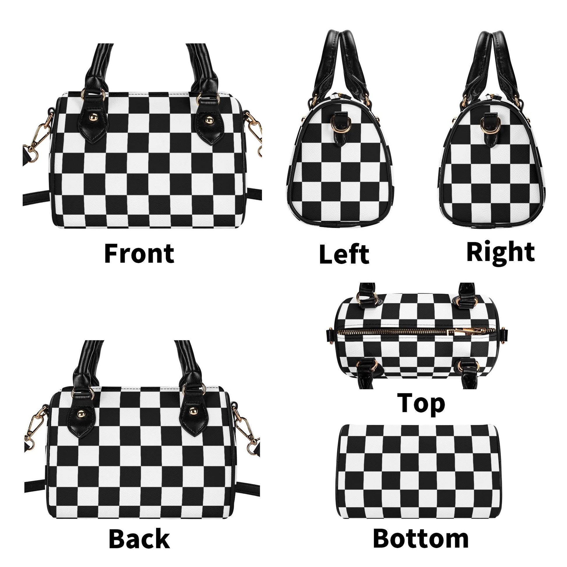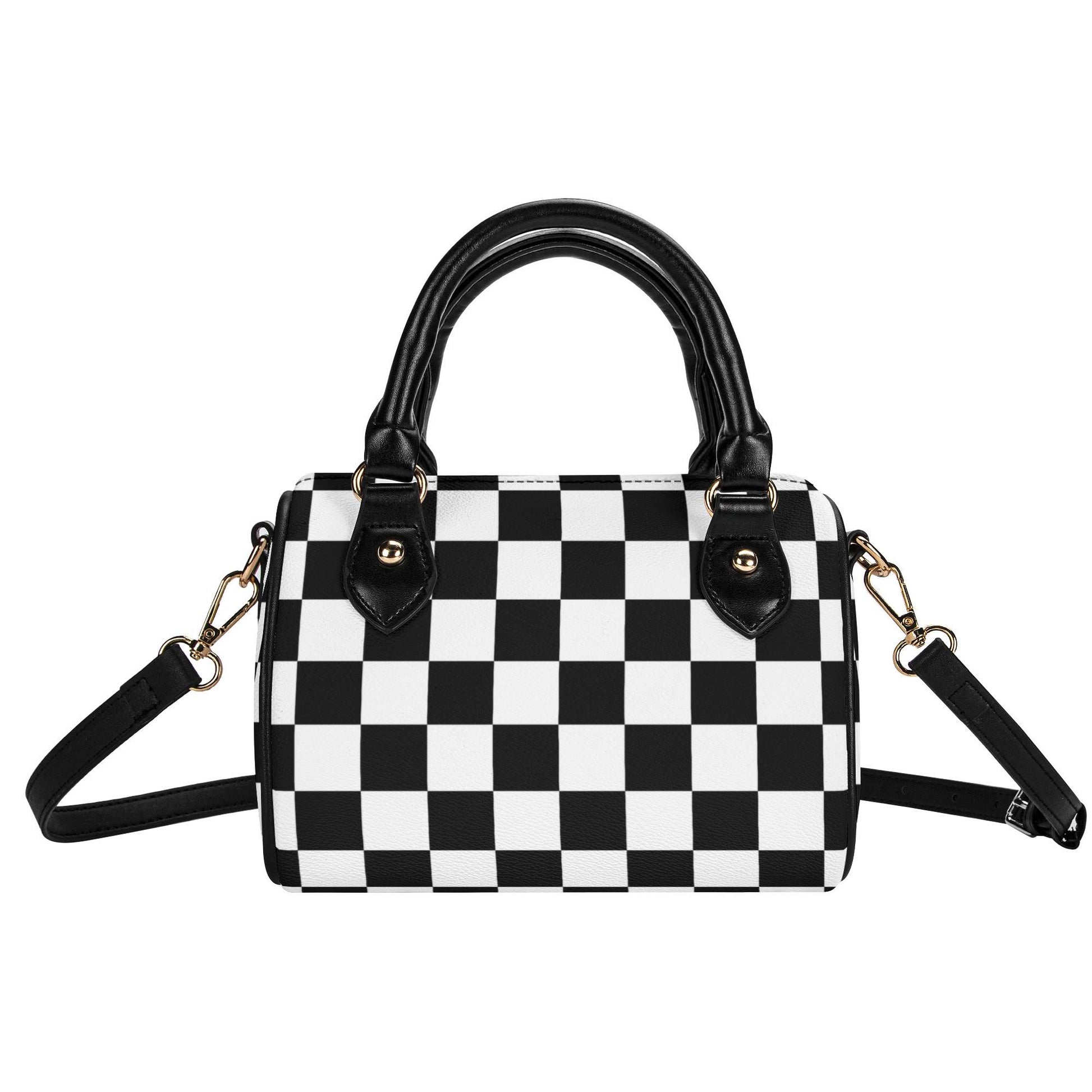 Checkered Mini Handbag. Leather Mini Small Boston Bag Satchel. Black Handbag. Top Handle. Shoulder Bag. Unique Gift.