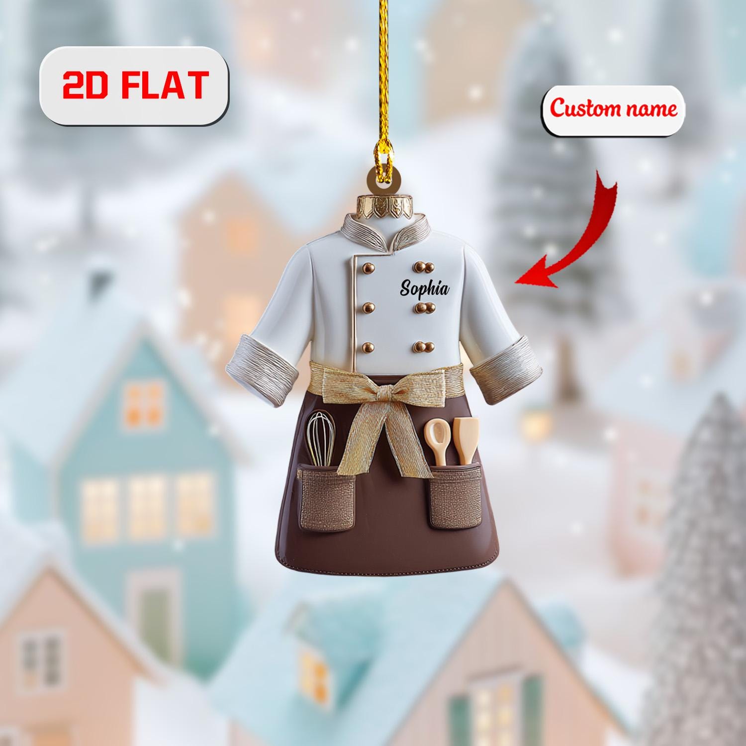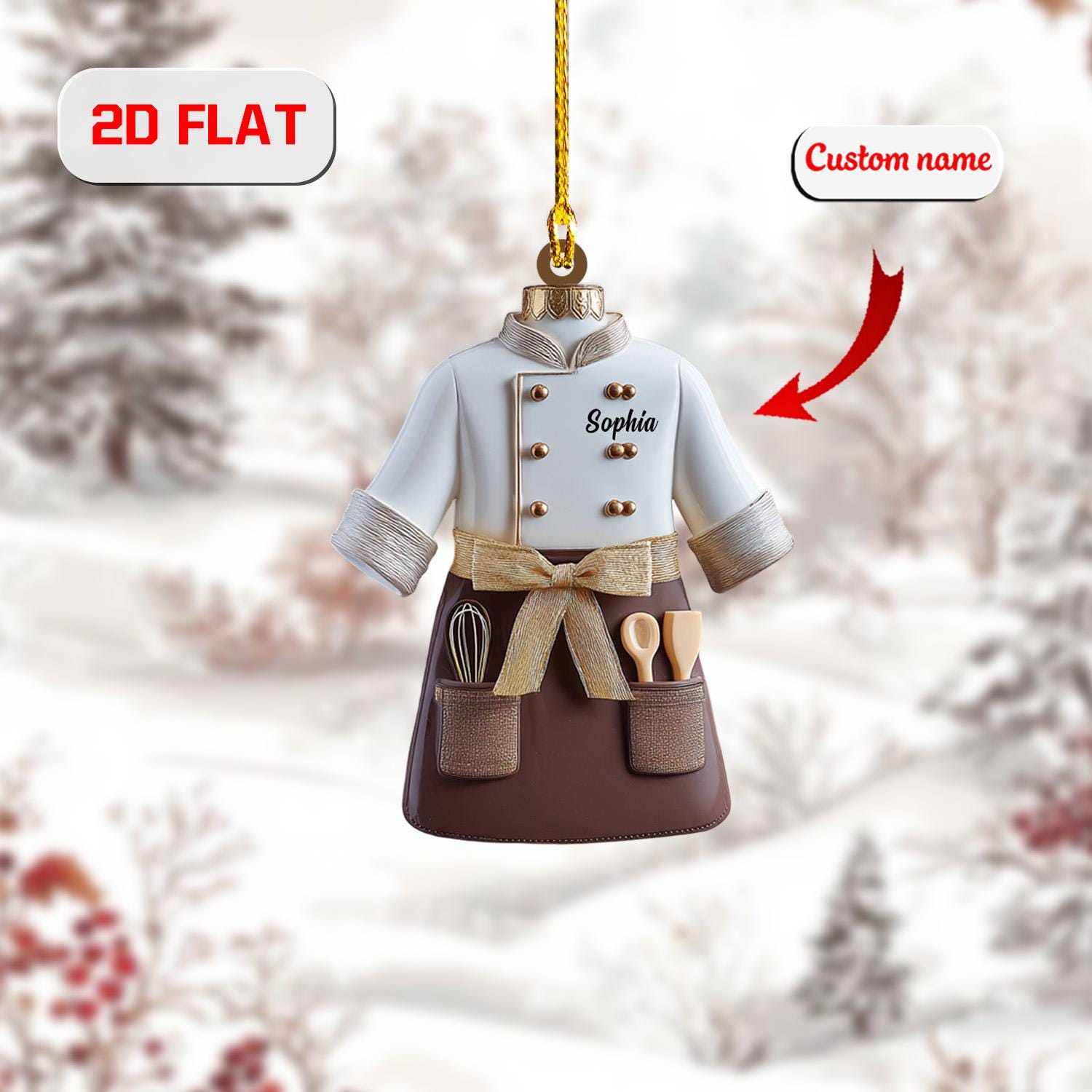 Chef Ornament, Personalized Christmas Tree Decoration, Custom Name Cooking Gift, Funny Kitchen Holiday Ornament For Bakers And Food Lovers