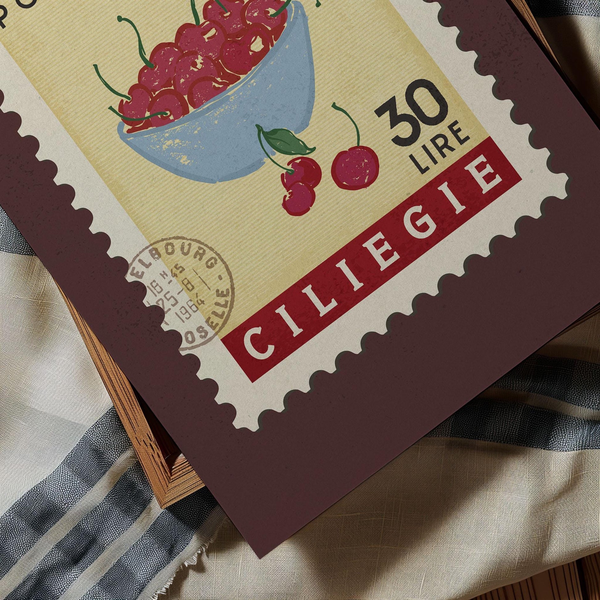 Cherry Poster, Cherry Fruit Market Print | Italian Food Art | Funky Fruit Poster, Cherry Wall Art, Cooking Kitchen Art