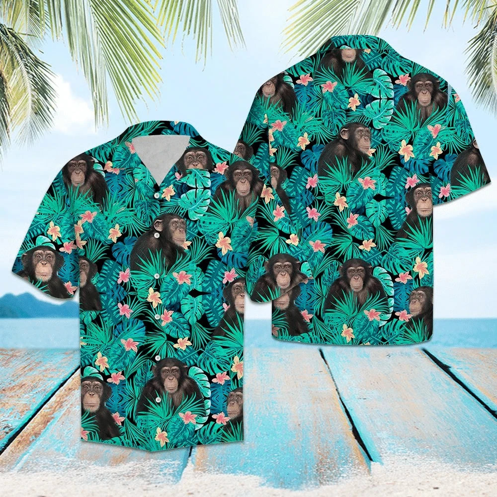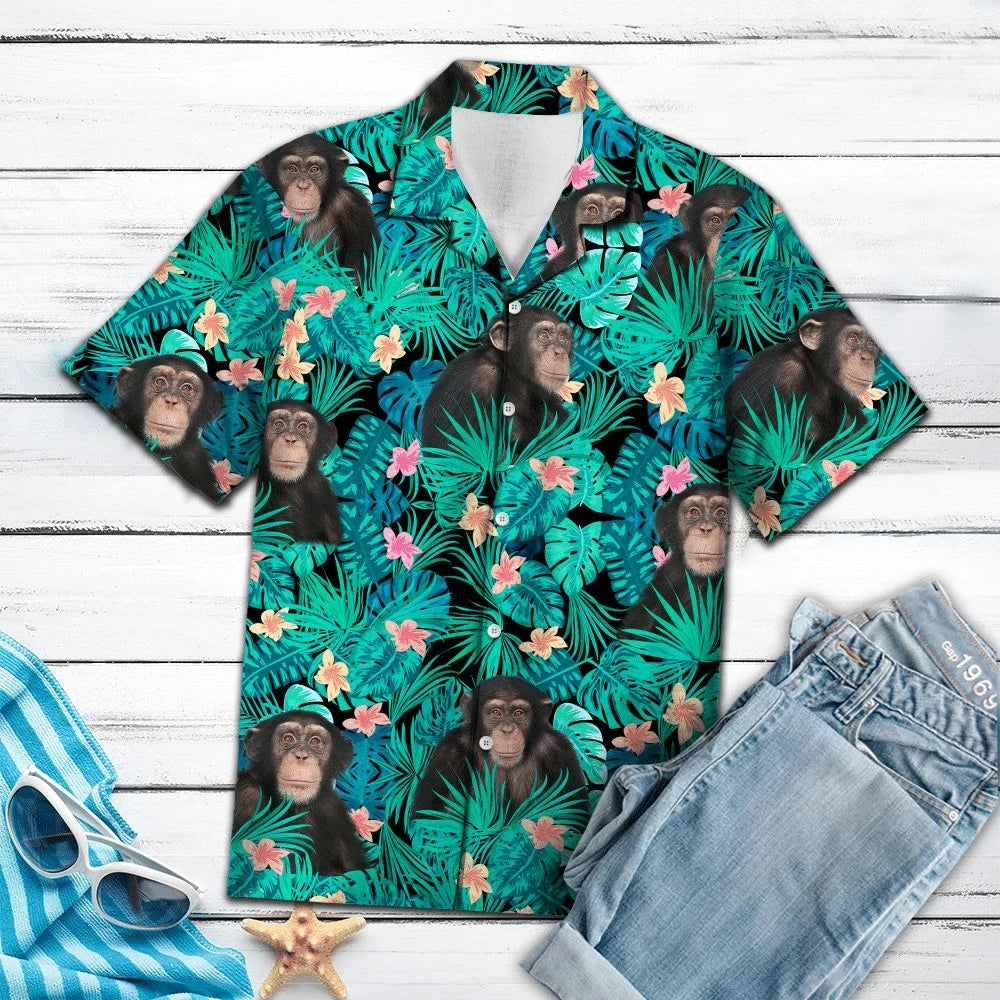 Foraoise Trópaiceach Chimpanzee le Patrún Bláthanna agus Fágtha Léine Haváís, Bronntanas Léine Haváí, Bronntanas Nollag
