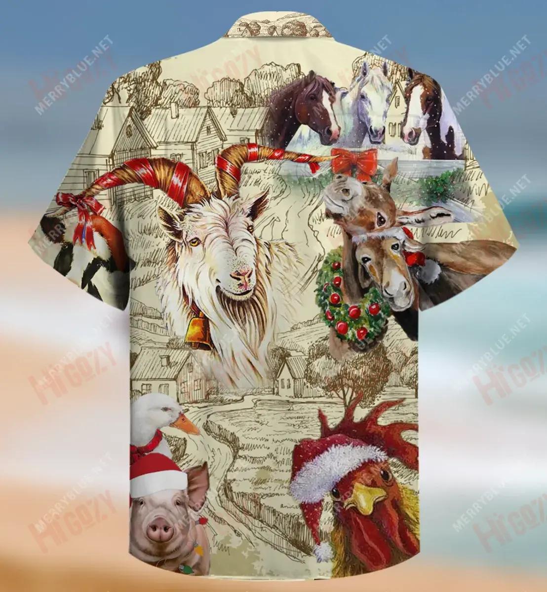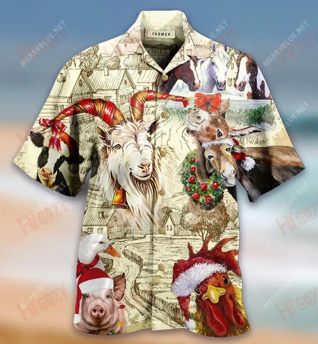 Tosaíonn an Nollaig Ar an bhFeirm Léine Haváí Unisex Muinchille Farraige Léinte Haváise Saincheaptha Léinte Greannmhar Haváís, Bronntanais Léine Haváís, Bronntanas Nollag