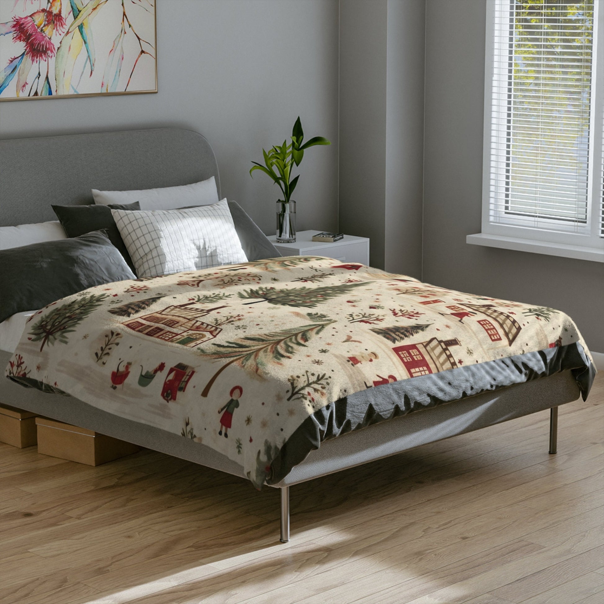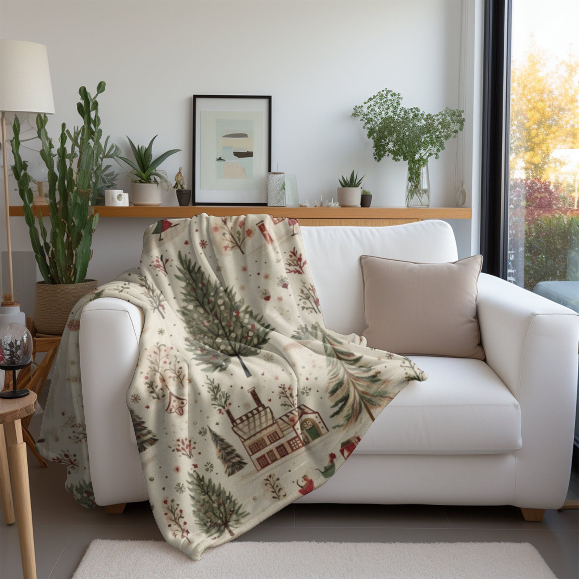 Christmas Blanket, Christmas Village Holiday Throw Nostalgic Village Christmas Town Fleece Christmas Gift Friends Family Co-worker Present