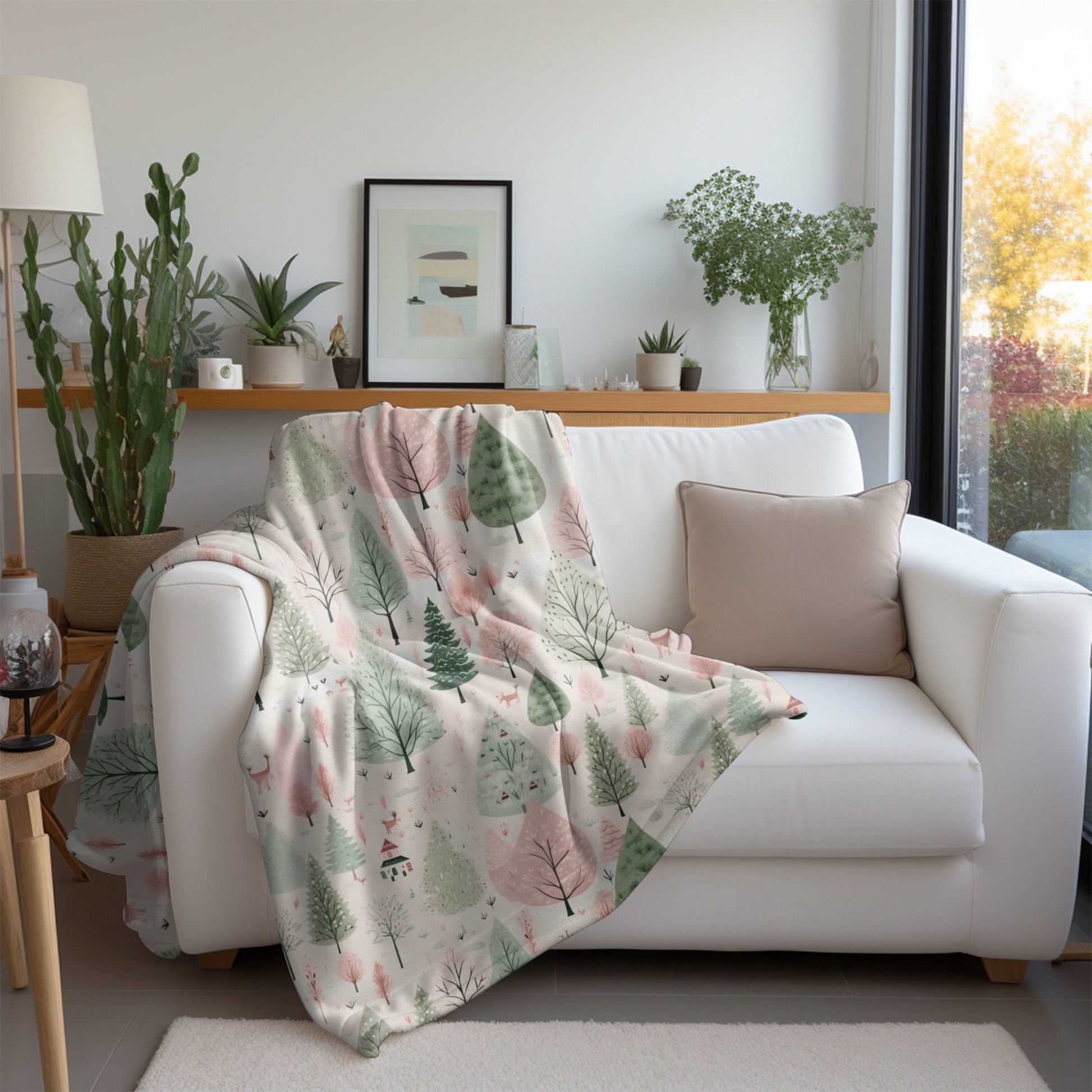 Christmas Blanket Pink Christmas Village Home Decor, Pink Christmas Tree Fleece, Chistmas Gift for Friends and Family Secret Santa Present