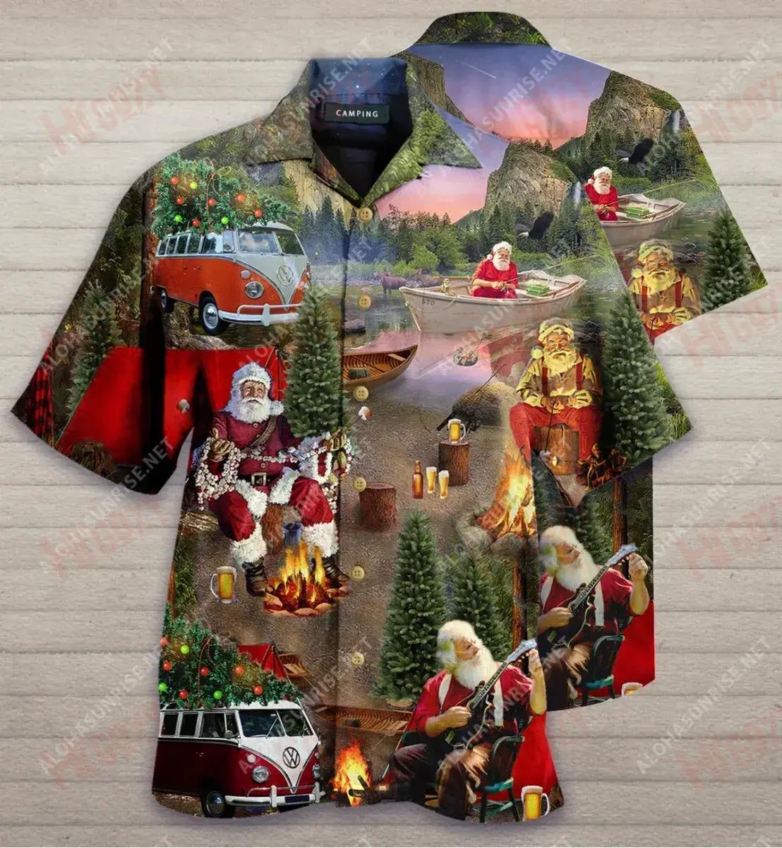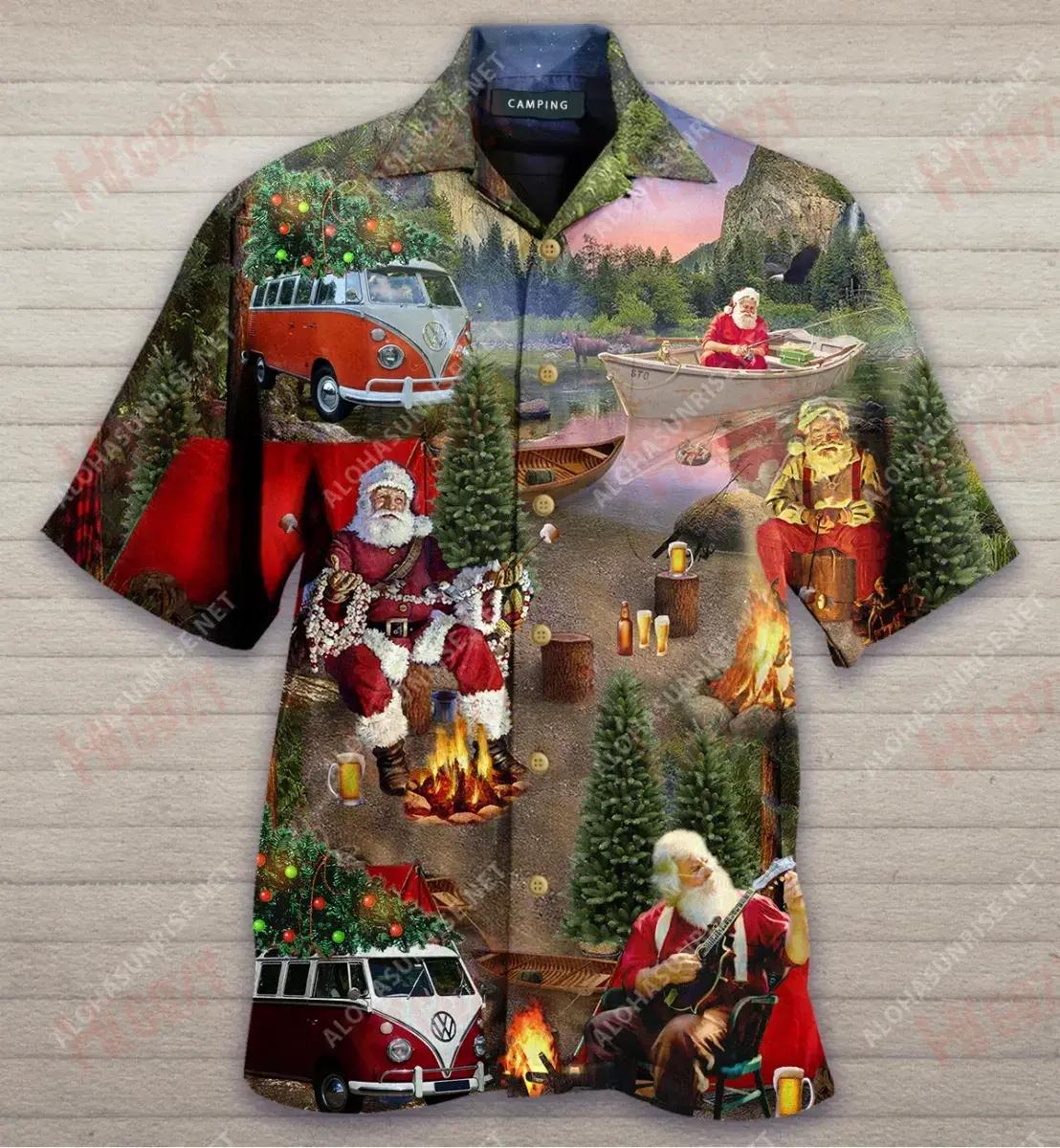 Tá an Nollaig Níos Fearr Timpeall an Campfire Léine Gearr Haváís Caitheamh aimsire Léinte haváíais Léinte Trópaiceacha d'Fhir Patrún Léine Haváís, Bronntanas Léine Haváís, Bronntanas Nollag