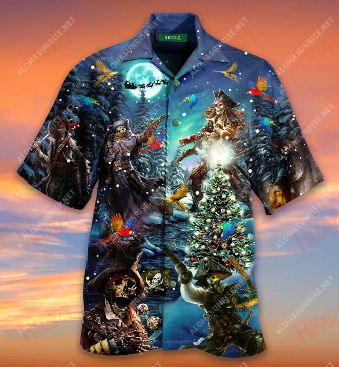 Cloigeann Pirate Nollag Unisex Léine Gearr Muinchille Gearr Laethanta Saoire Léinte T Haváíacha Léinte Crazy Haváíais Patrún Léine Haváíais, Bronntanas Léine Haváís, Bronntanas Nollag