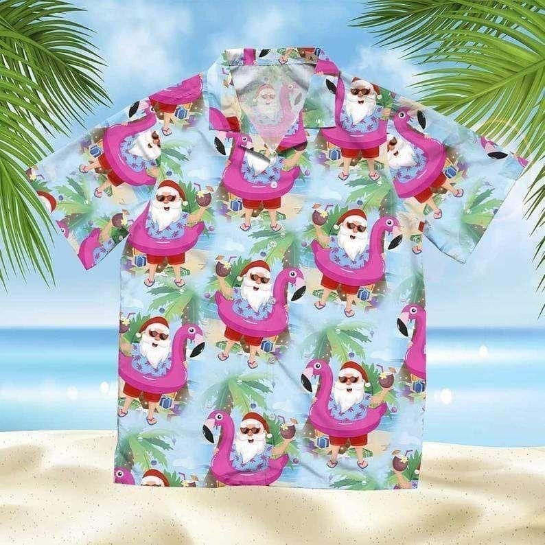 Daidí na Nollag Le Flamingo Léine Greannmhar Haváís, Bronntanas Léine Haváís, Bronntanas Nollag