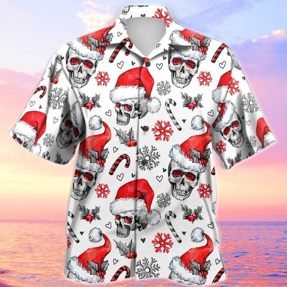 Skull Nollag Santa gcáithnínísneachta Patrún Lámhtharraingthe Léine Haváís, Bronntanas Léine Haváís, Bronntanas Nollag