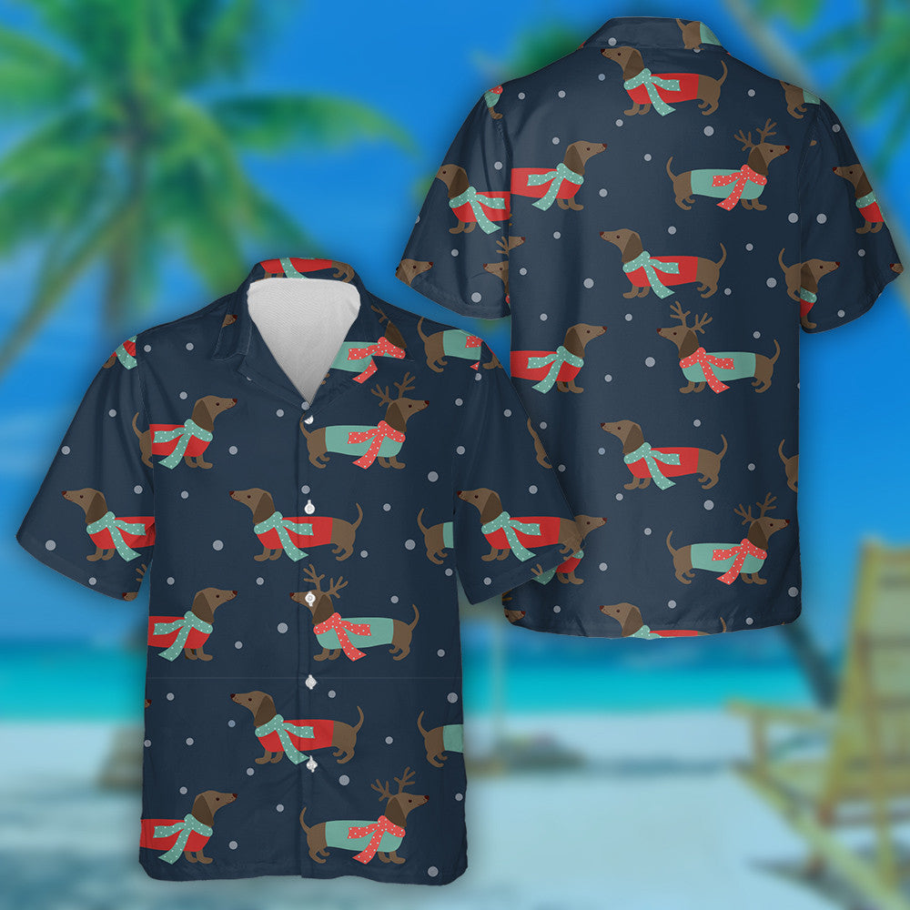 Dachshund Stíl na Nollag le scairfeanna Agus gcáithnínísneachta Léine Haváís, Bronntanas Léine Haváís, Bronntanas Nollag