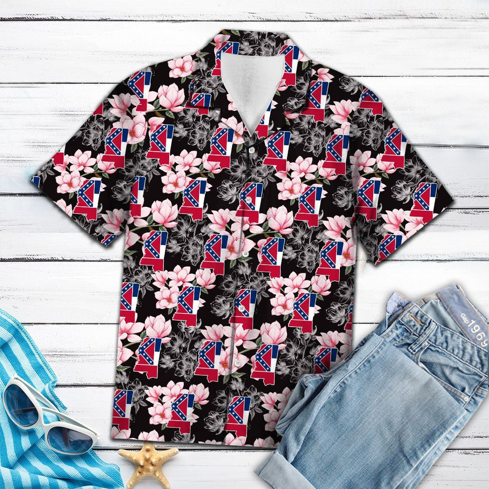 Bratach Clasaiceach Mississippi Magnolia Bláth ar Patrún Dubh Léine Haváís, Bronntanas Léine Haváís, Bronntanas Nollag