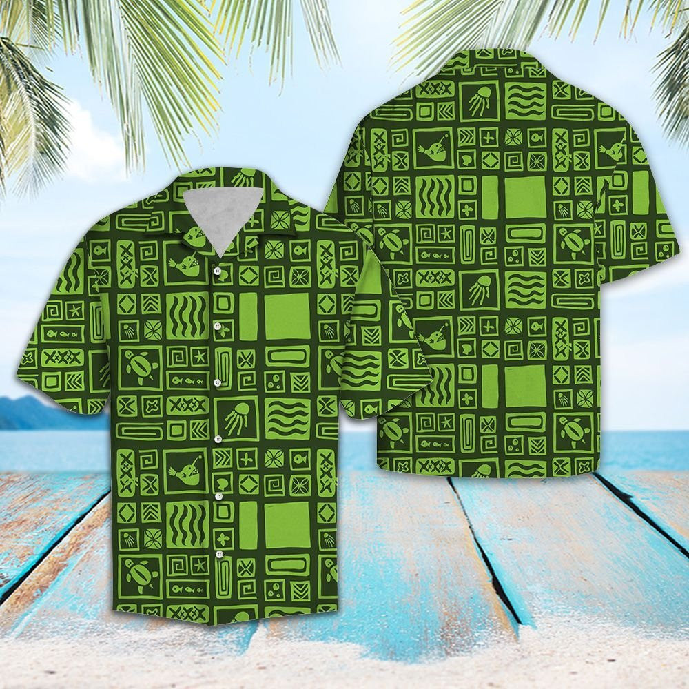 Léine Haváíais Clasaiceach Polainéise Glas Ealaíne Haváís, haváíais Don Bronntanas