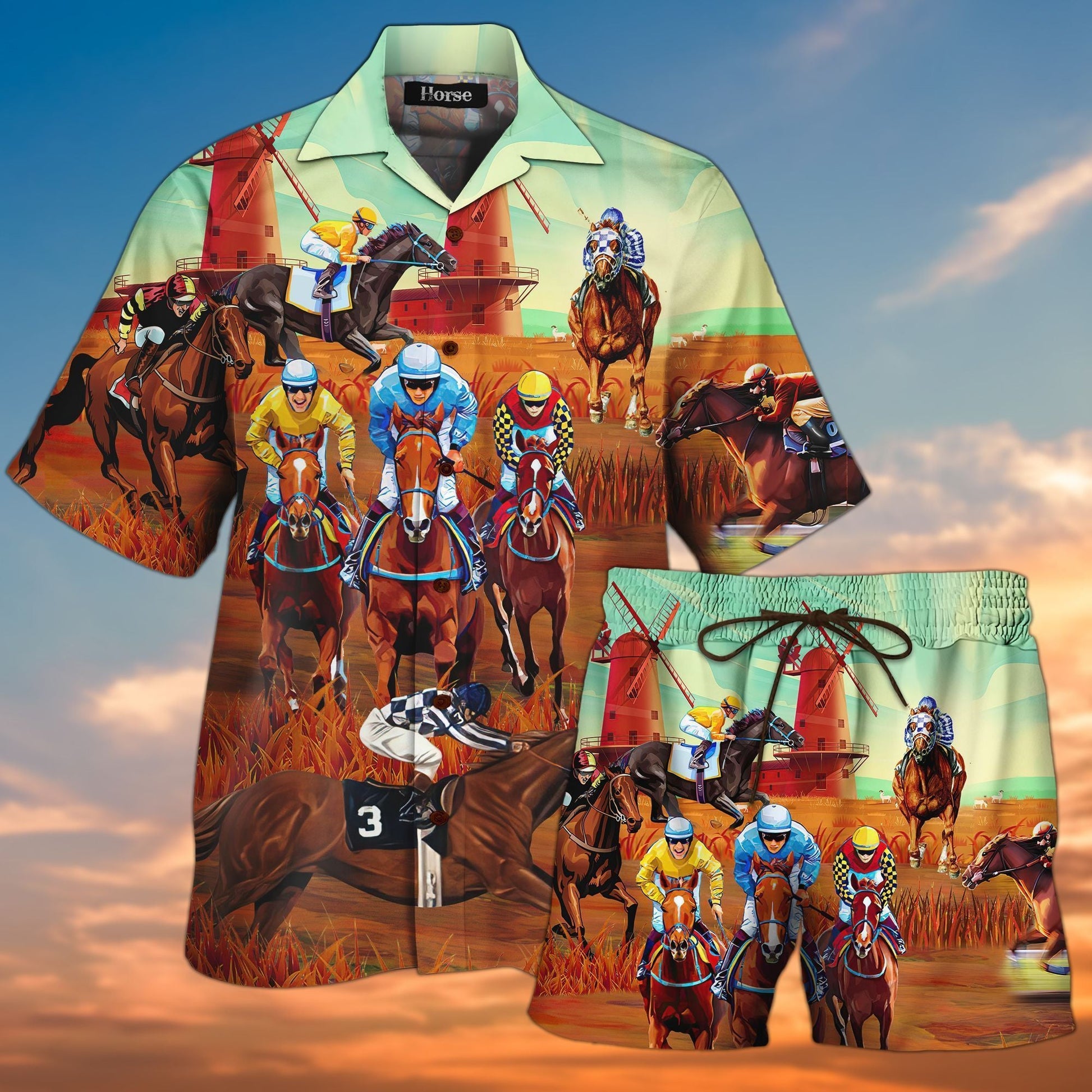 Rásaíocht Chapall Clasaiceach Léine agus Gearróga Haváí Ornáideacha Crazy, Bronntanas Léine Haváís, Bronntanas Nollag
