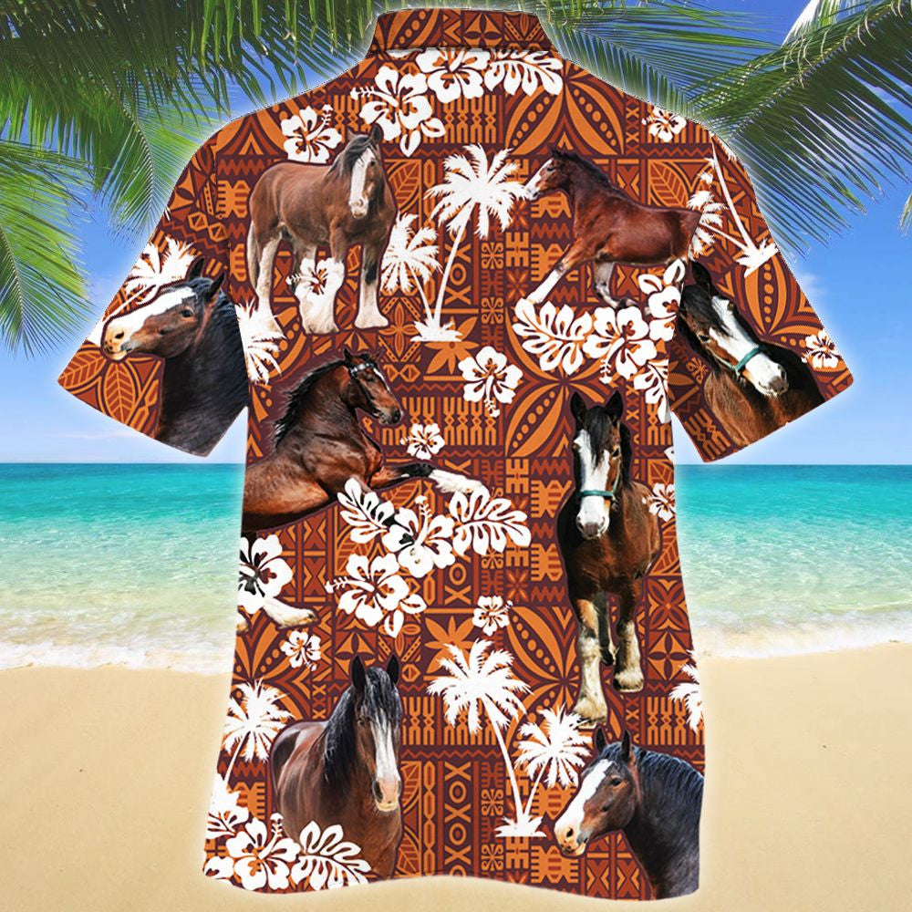 Capall agus Hibiscus Clydesdale ar Phatrún Dearg na Treibhe Léine Haváís, Bronntanas Léine Haváíais, Bronntanas Nollag