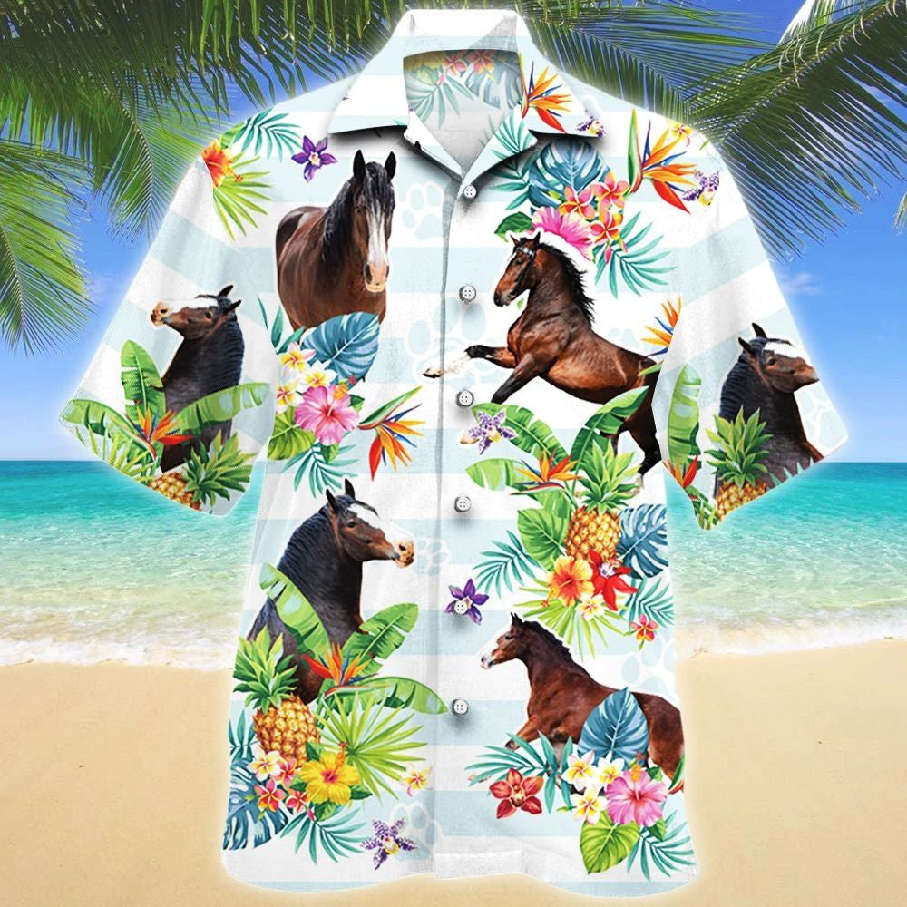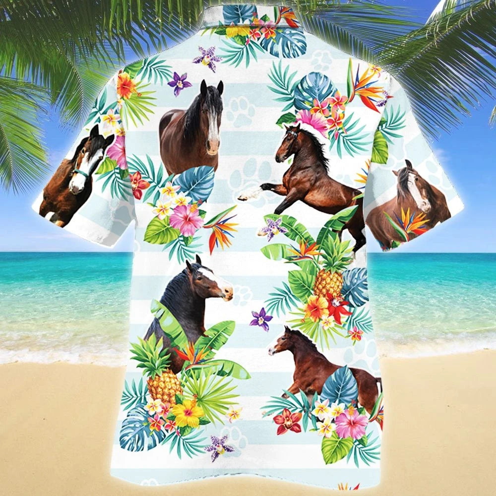 Bláth Tropical Capall Clydesdale Léine Haváís Stráice Gorm Agus Bán, Bronntanas Léine Haváís, Bronntanas Nollag
