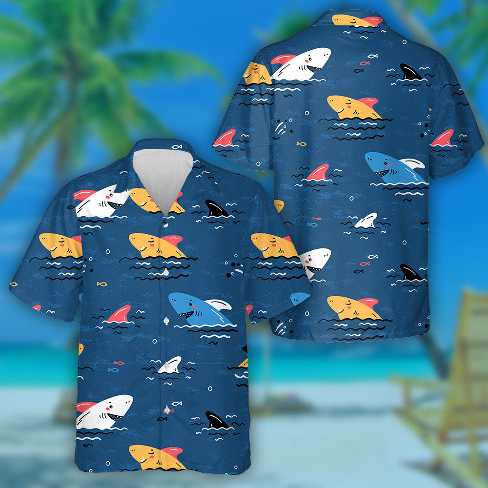 Siorcanna Cartúin Dathúla An Fharraige Samhraidh Cúlra Gorm Dorcha Léine Haváís, Bronntanas Léine Haváís, Bronntanas Nollag