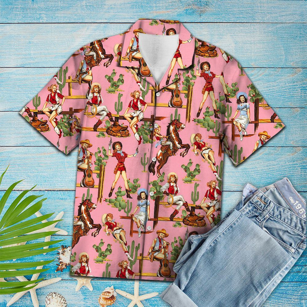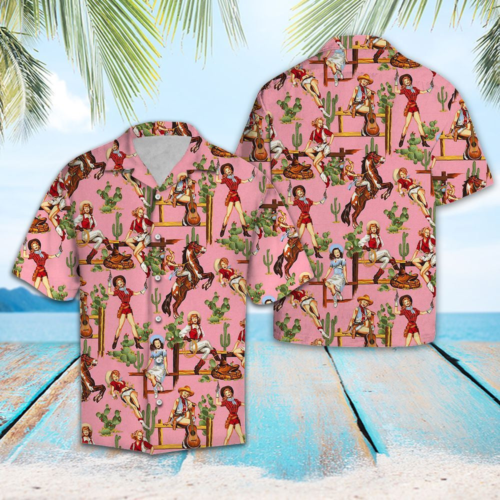 Cowgirl Cool Le Crainn Pailme I nDearadh Bándearg Léine Haváís, Bronntanas Léine Haváís, Bronntanas Nollag