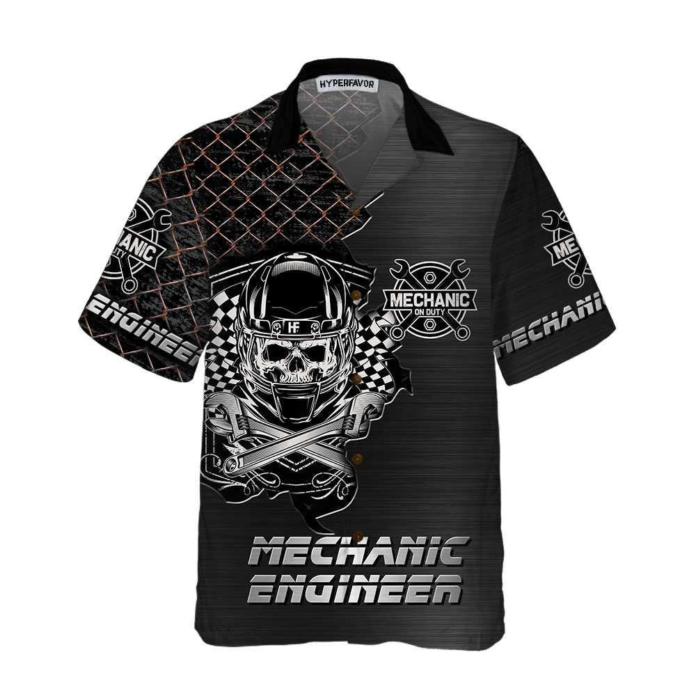 Innealtóir Meicneoir Cool Skull Glan Cúlra Liath Dorcha Léine Haváíais, Bronntanas Léine Haváíais, Bronntanas Nollag