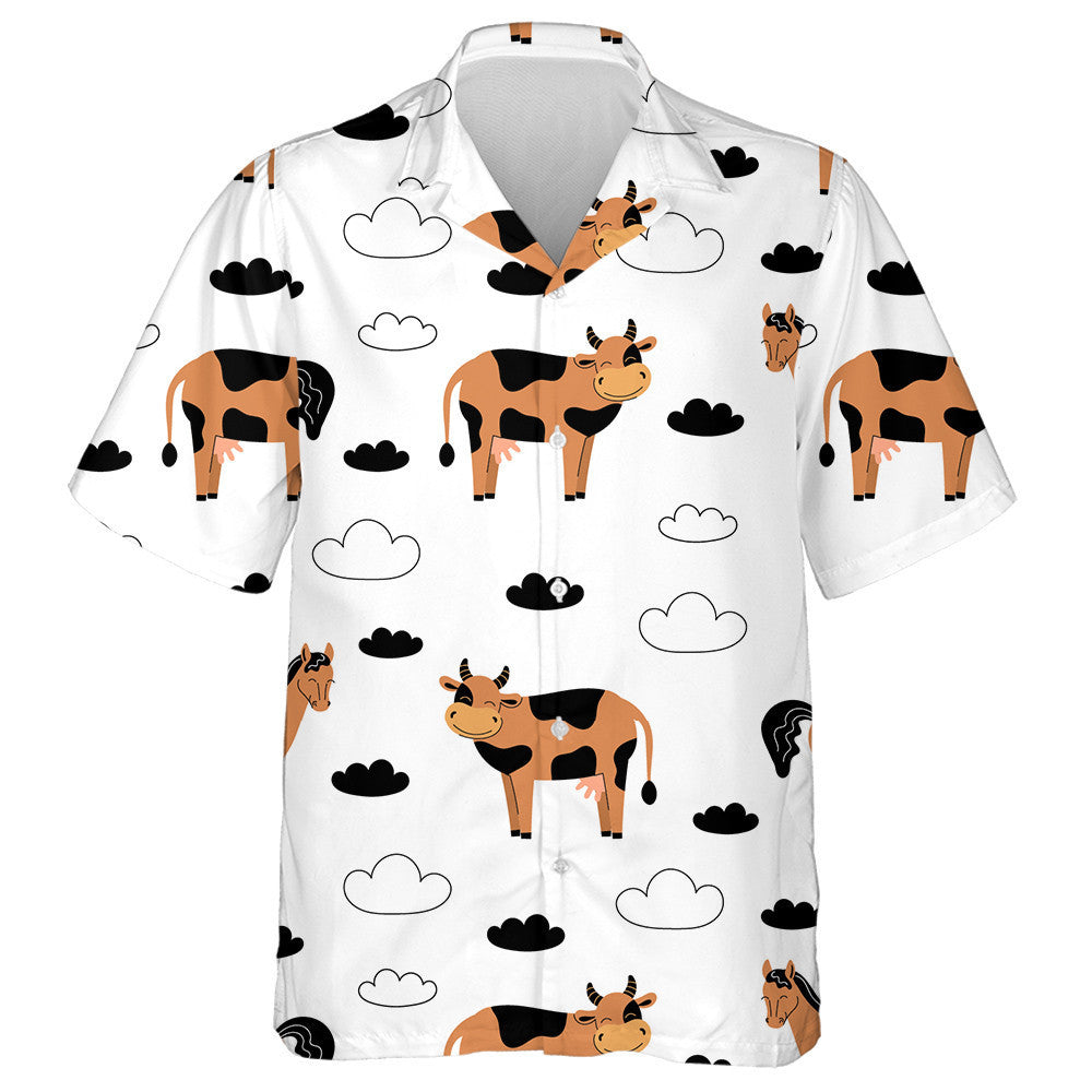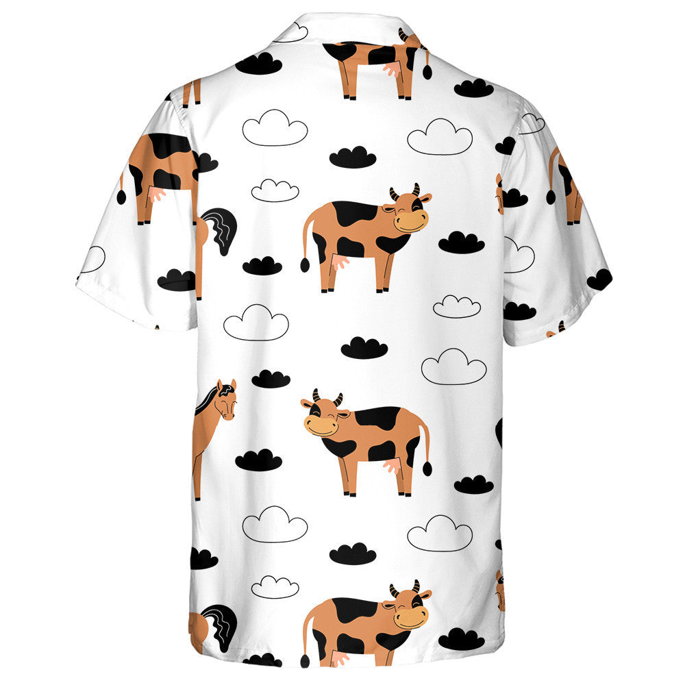 Ainmhithe Bó Agus Capall Feirme ar Chúlra Bán Léine Haváís, Bronntanas Léine Haváíais, Bronntanas Nollag