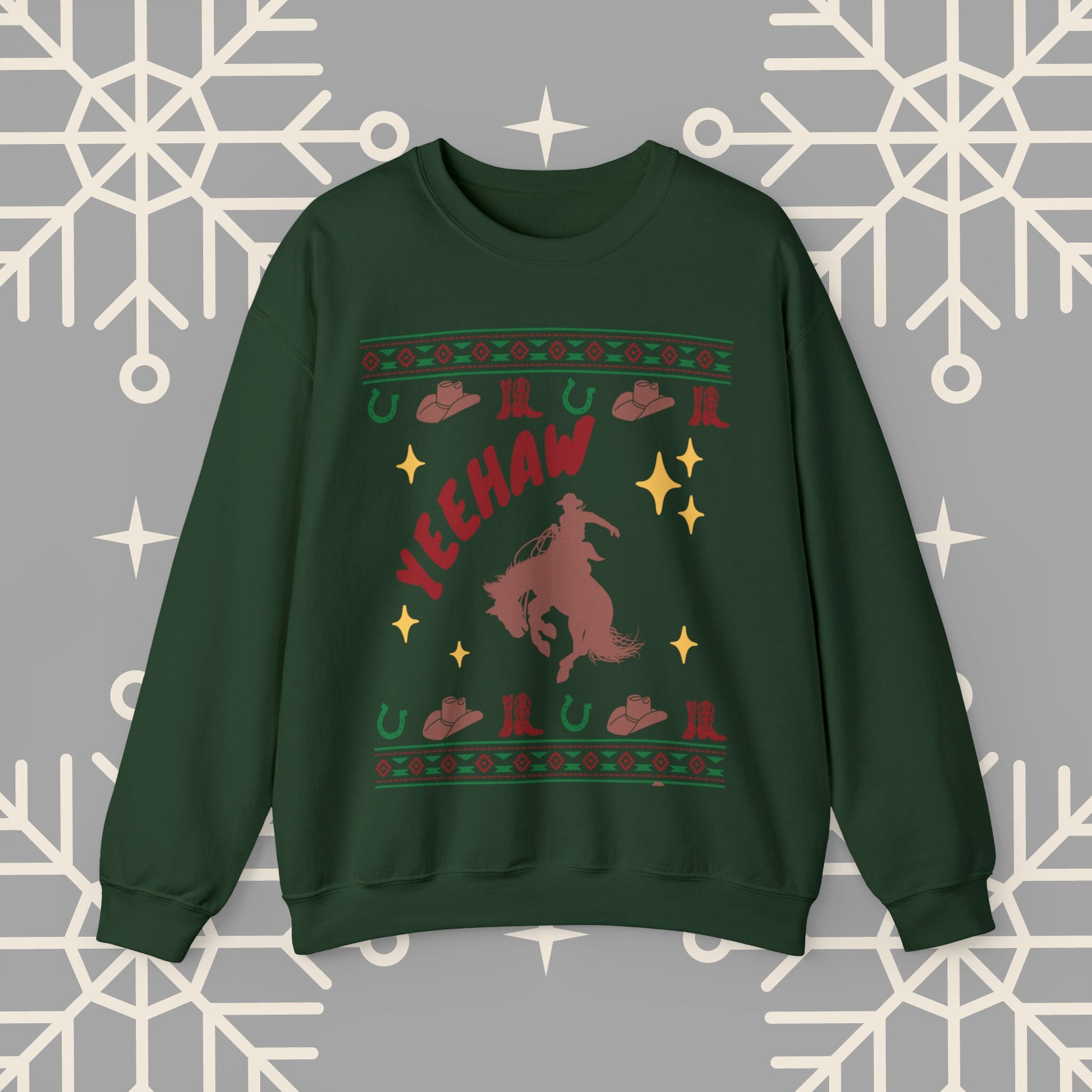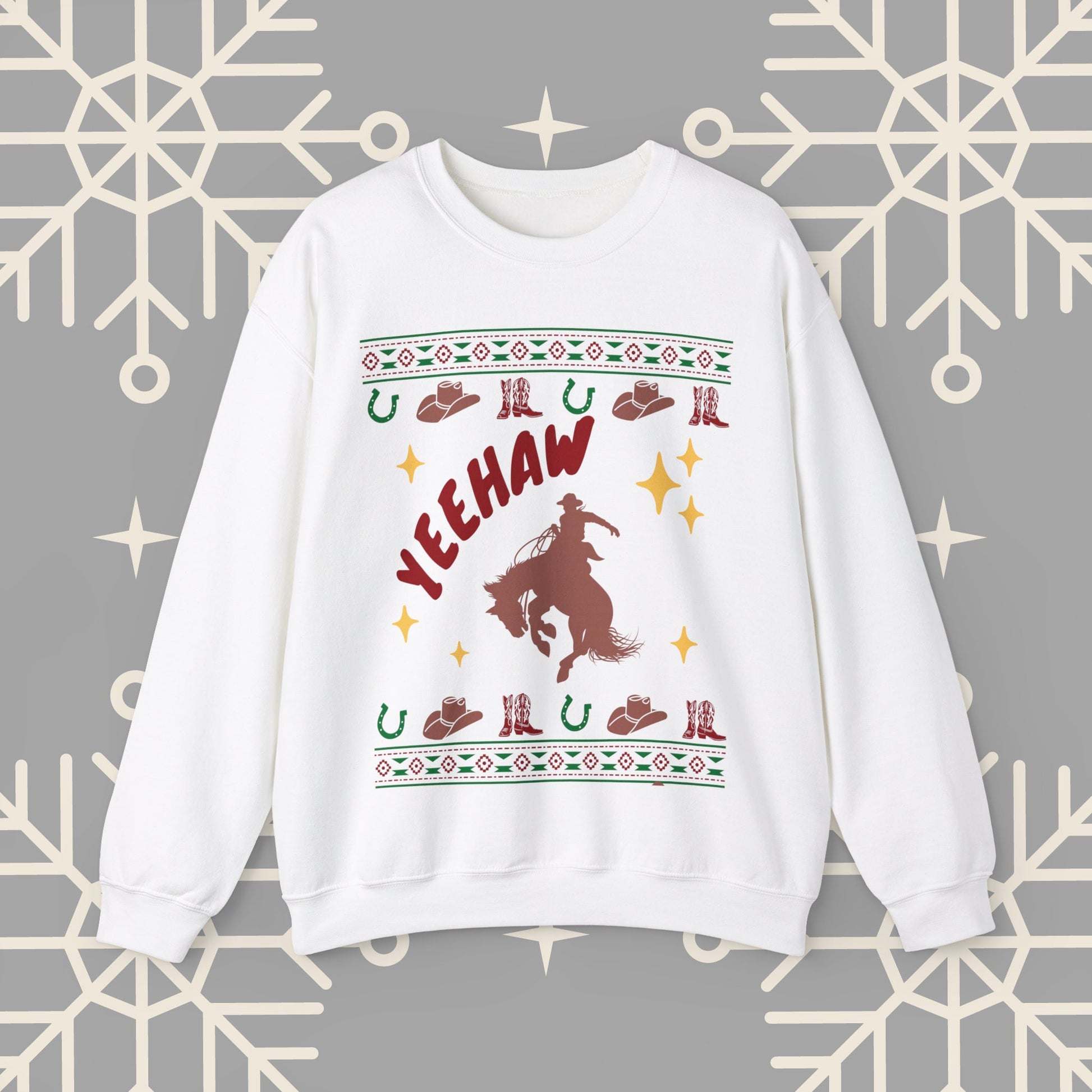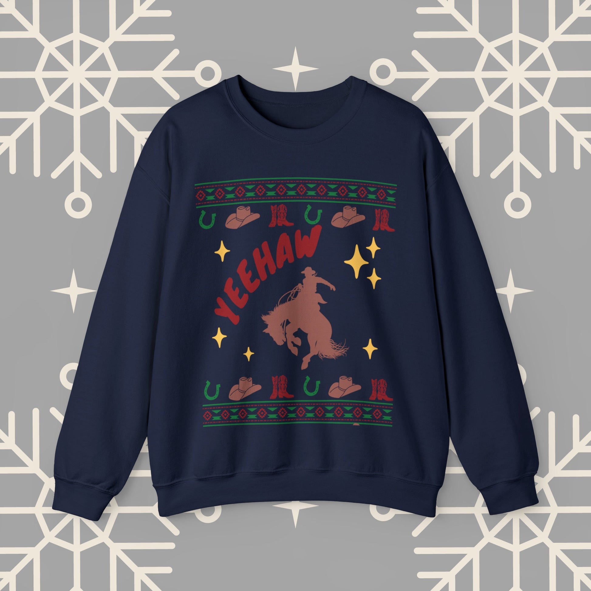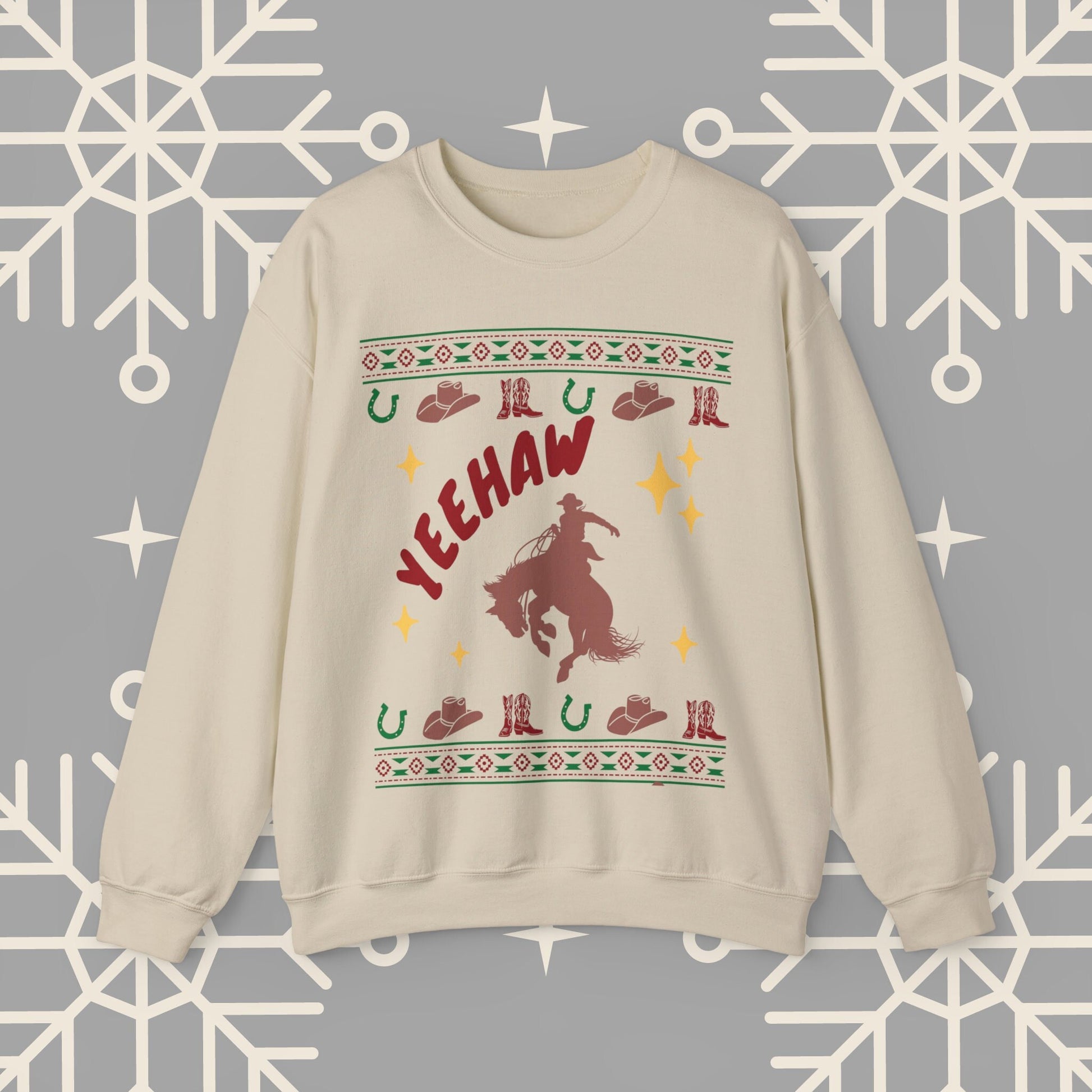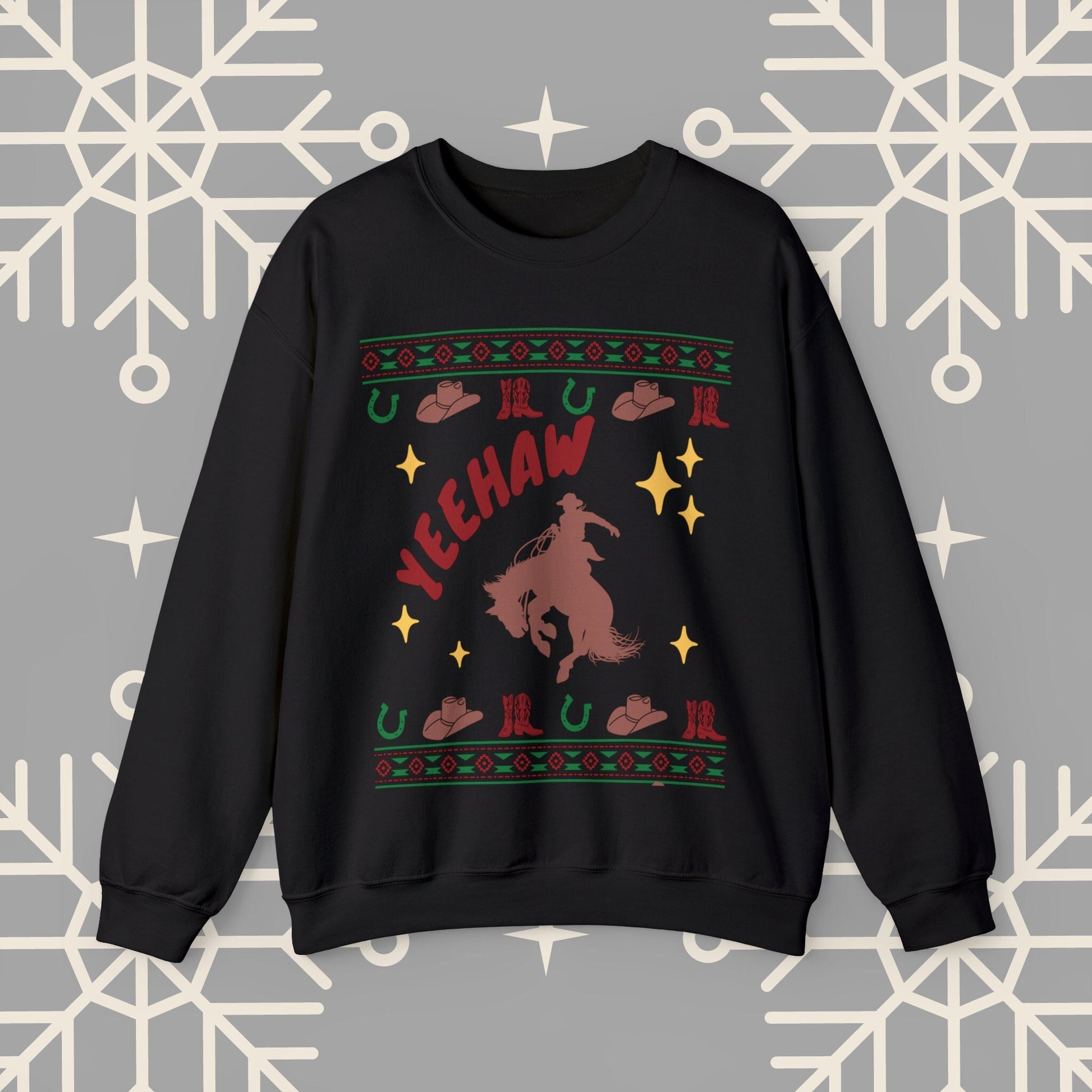 Cowboy Christmas Sweatshirt, Horse Riding Ugly Christmas , Yeehaw Funny Holiday Crewneck Jumper, Cowboy Gifts