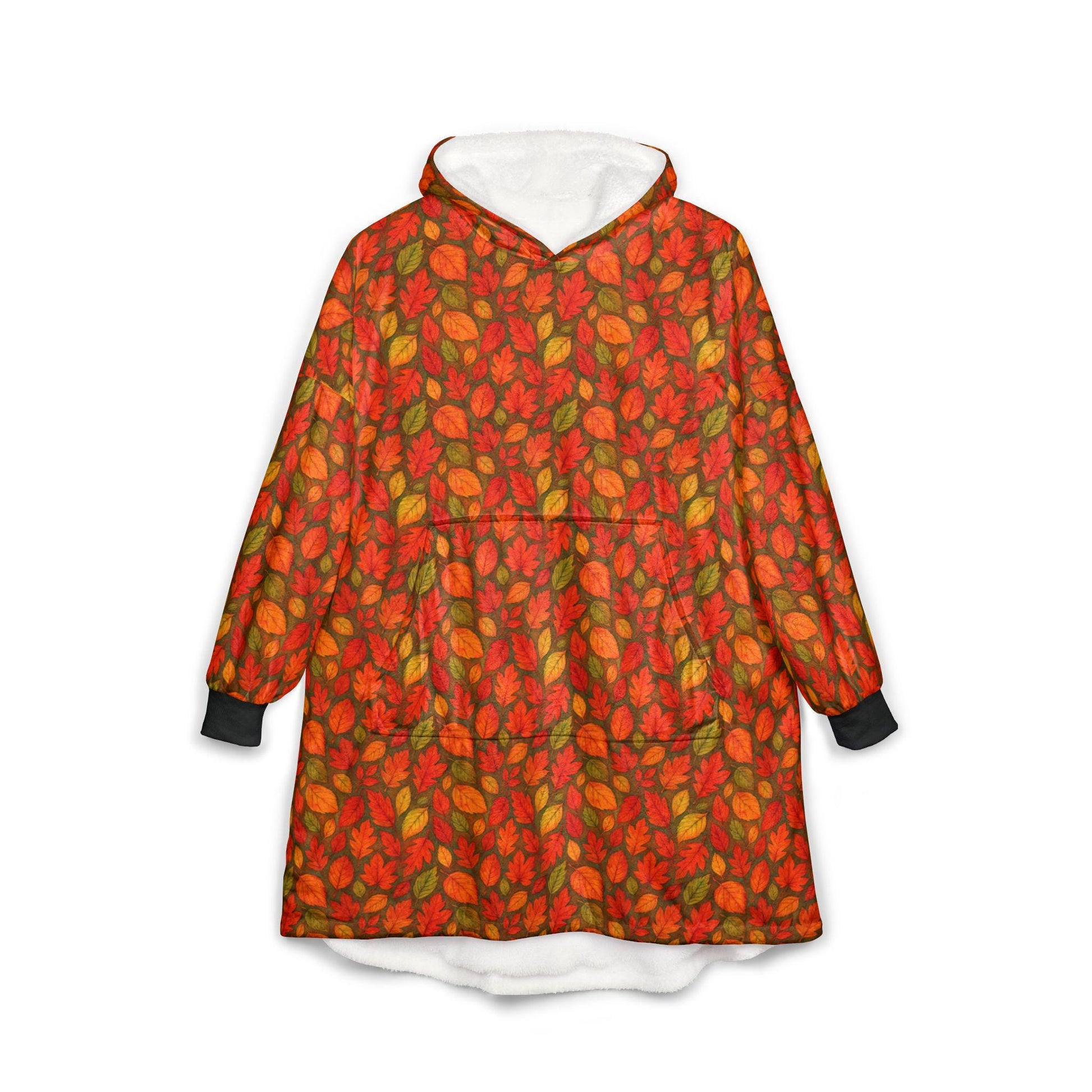 Cozy Autumn Leaves Hooded Blanket, Comfortable Throw, Soft Fleece Blanket, Perfect for Fall, Home Decor, Gift Idea