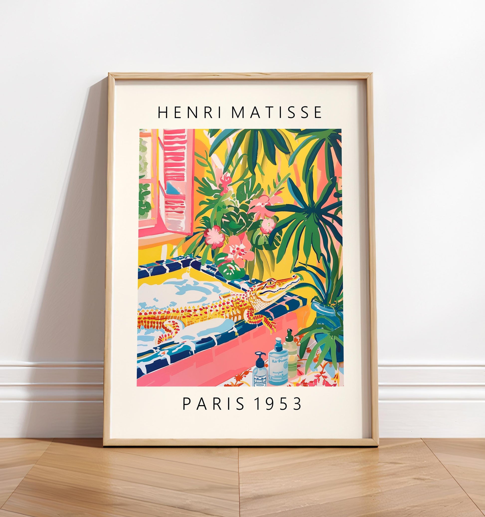 Crocodile in Bathtub Print: Funny Pink Bathroom Wall Art