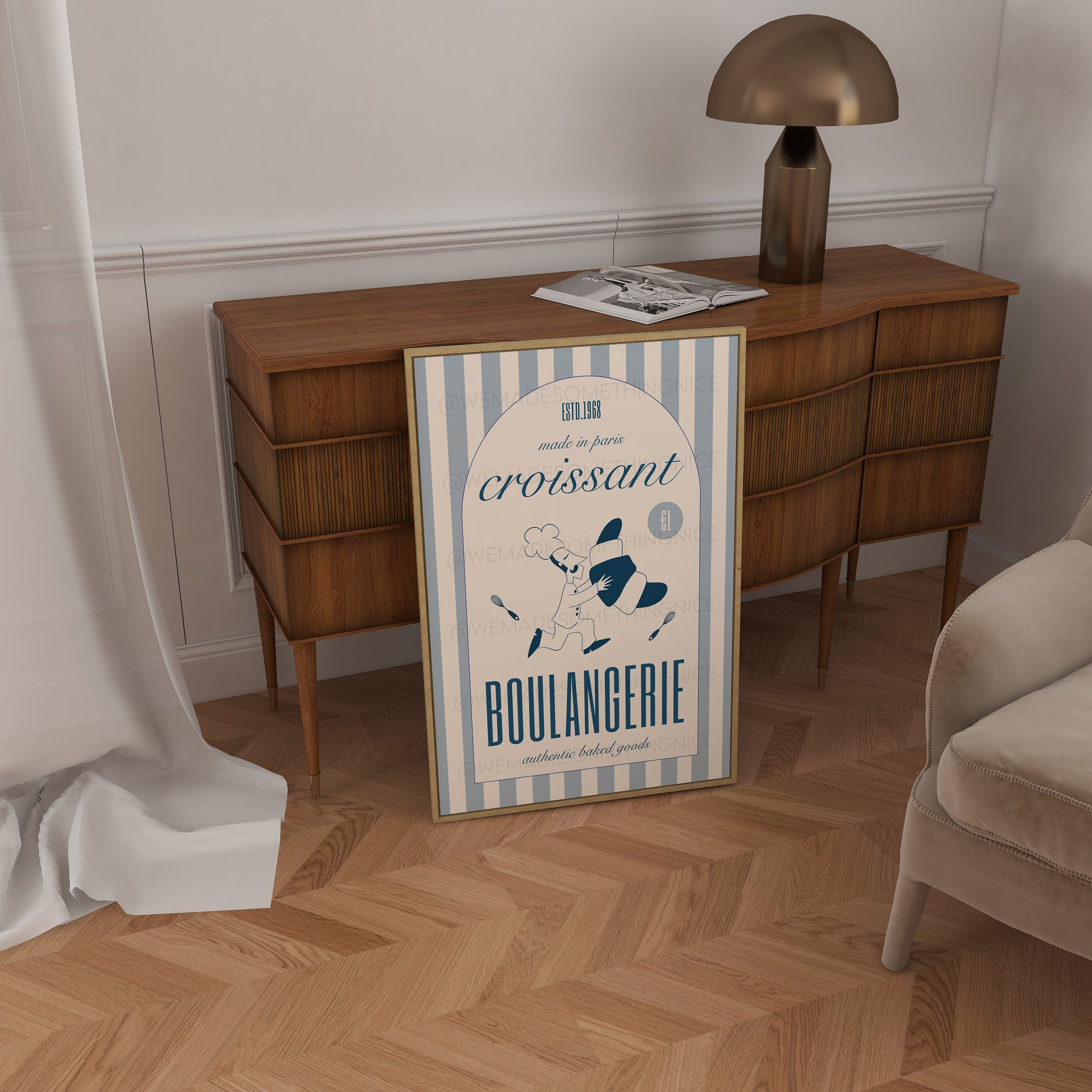 Croissant Poster, Kitchen Art, Kitchen Print, Kitchen Wall Art, Trendy Wall Art, Croissant Print, Retro Wall Art