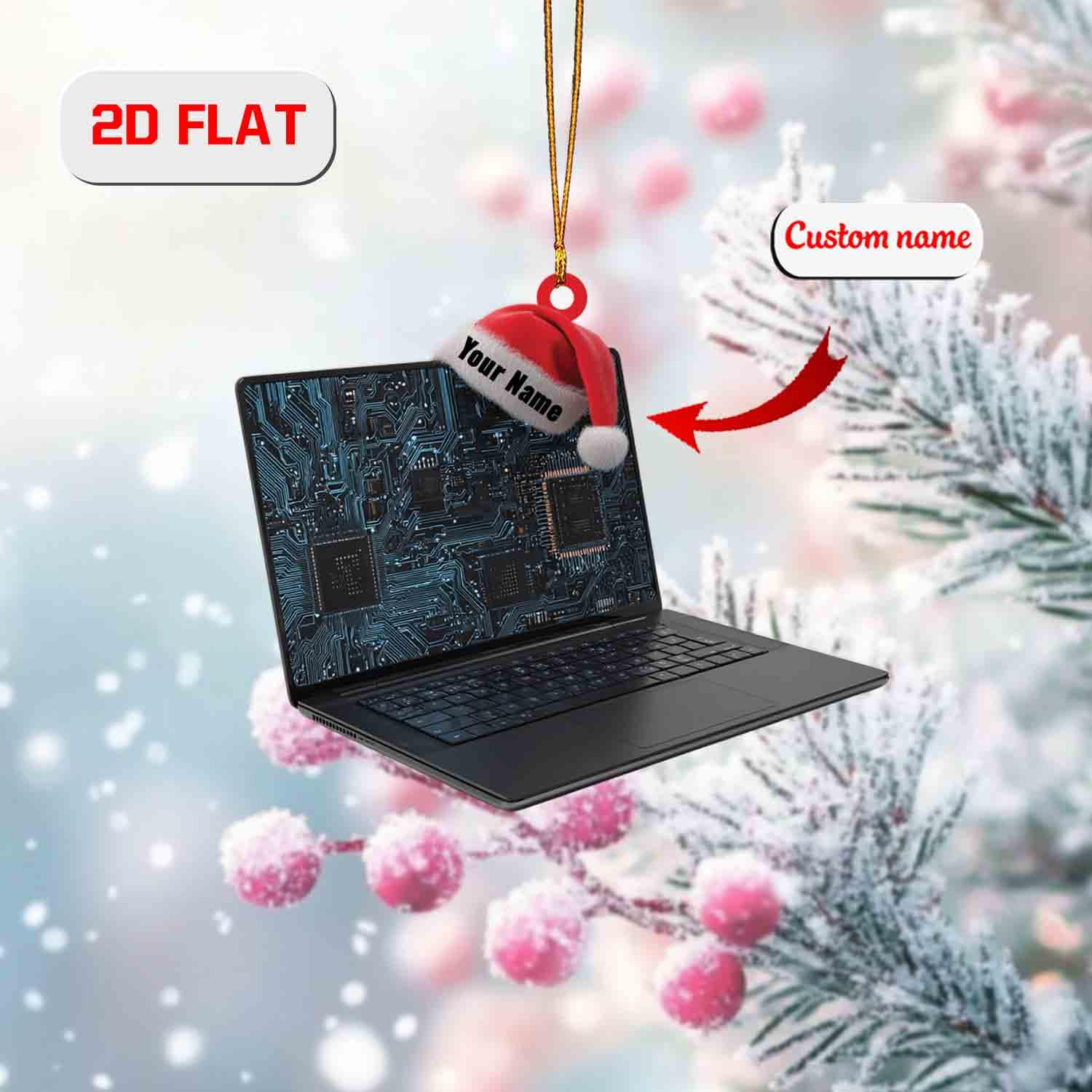 Custom 2D Flat Laptop Ornament, Personalized Acrylic Computer Christmas Ornament with Name, Tech Lover Gift, Programmer Holiday Tree Decor