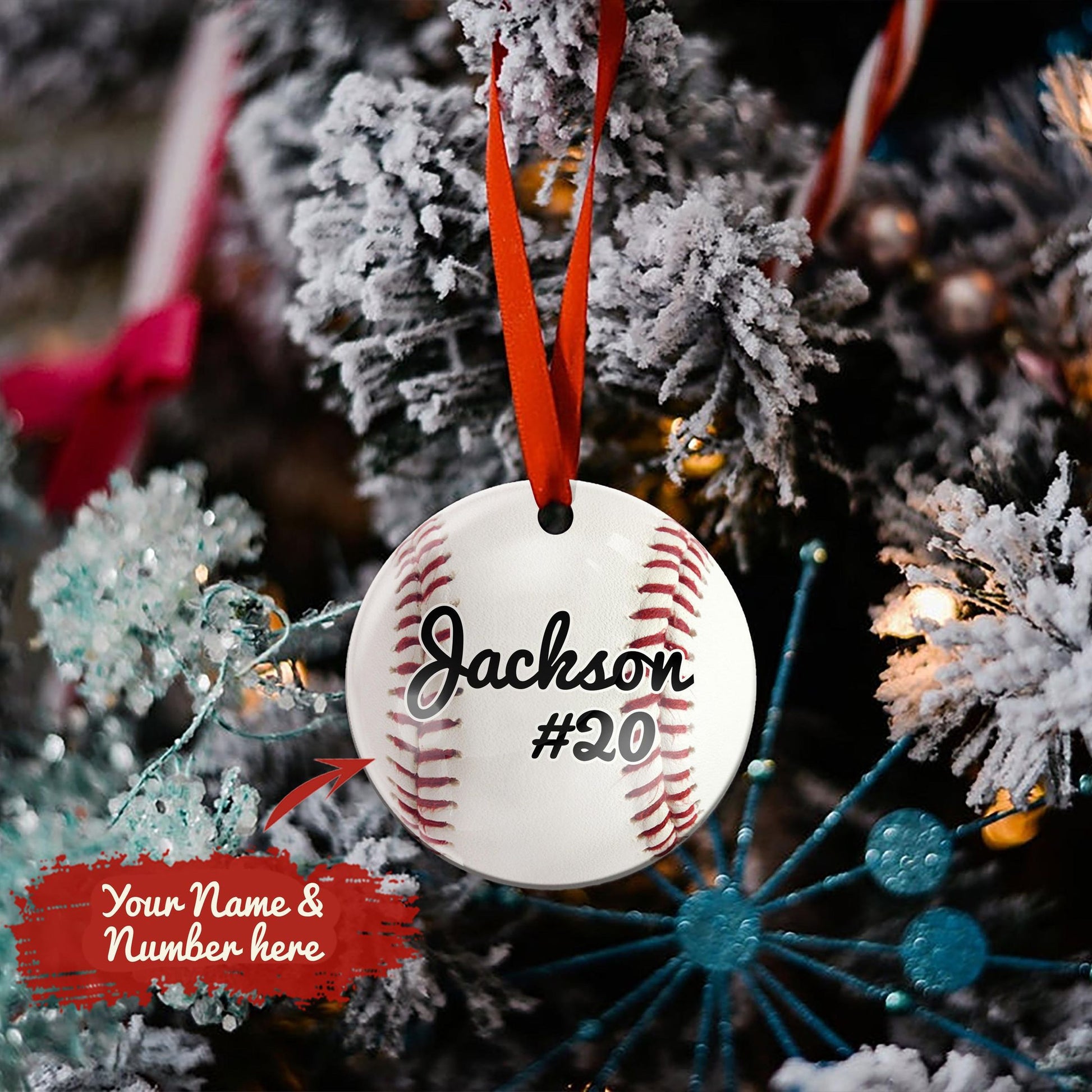 Ornáid Ceirmeach Babhta Saincheaptha Baseball, Bronntanas Nollag, Maisiú Nollag