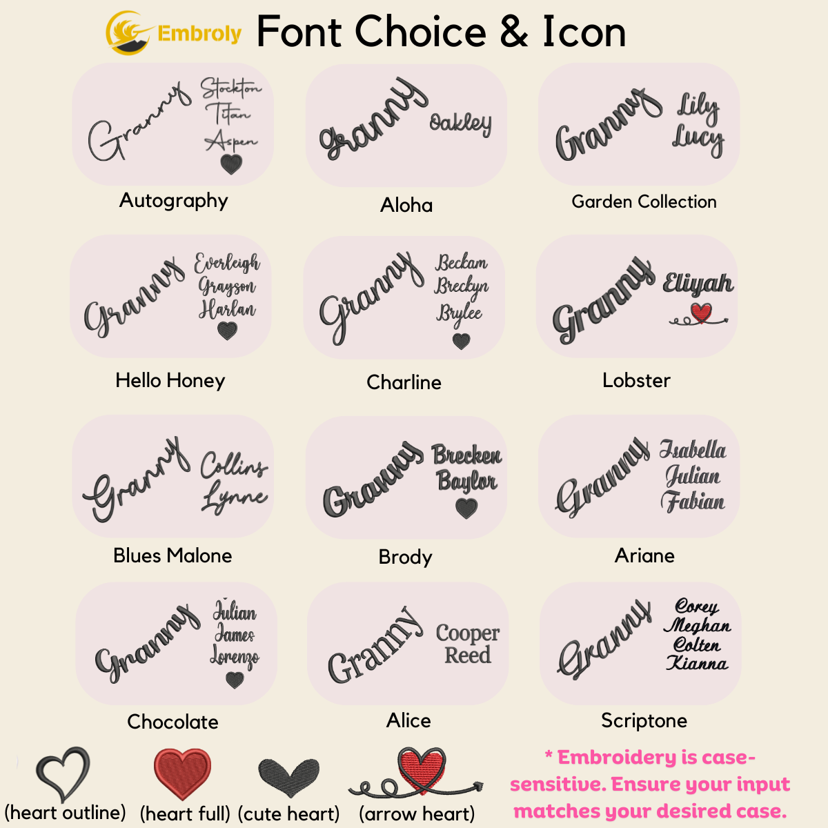 Custom Embroidered Granny Sweatshirt with GrandKids Names on Sleeve