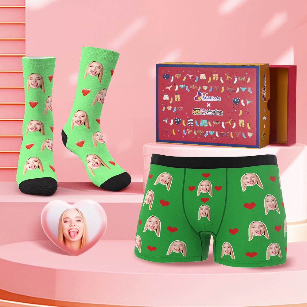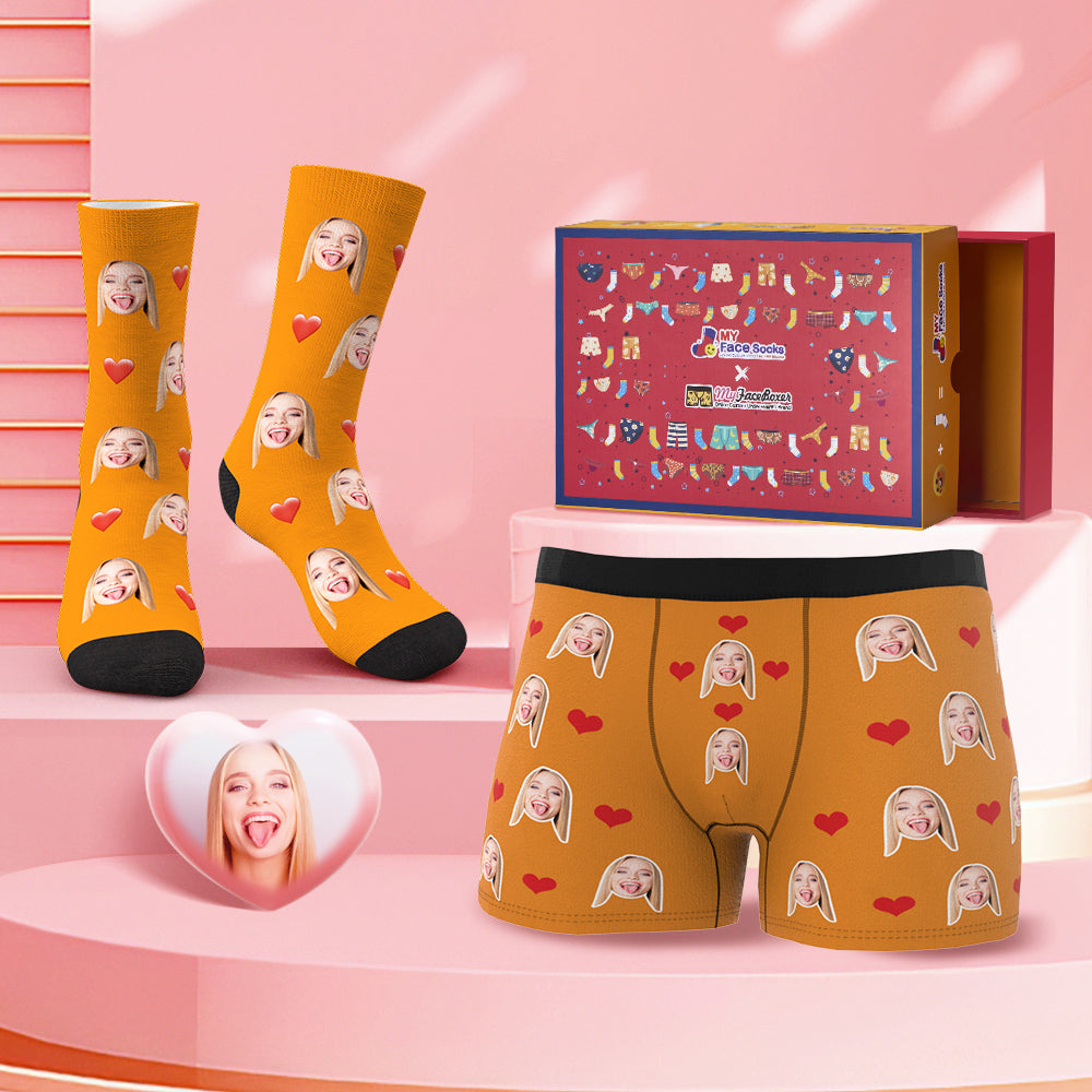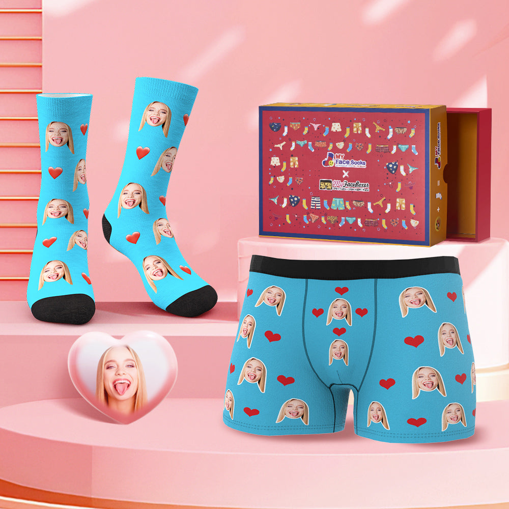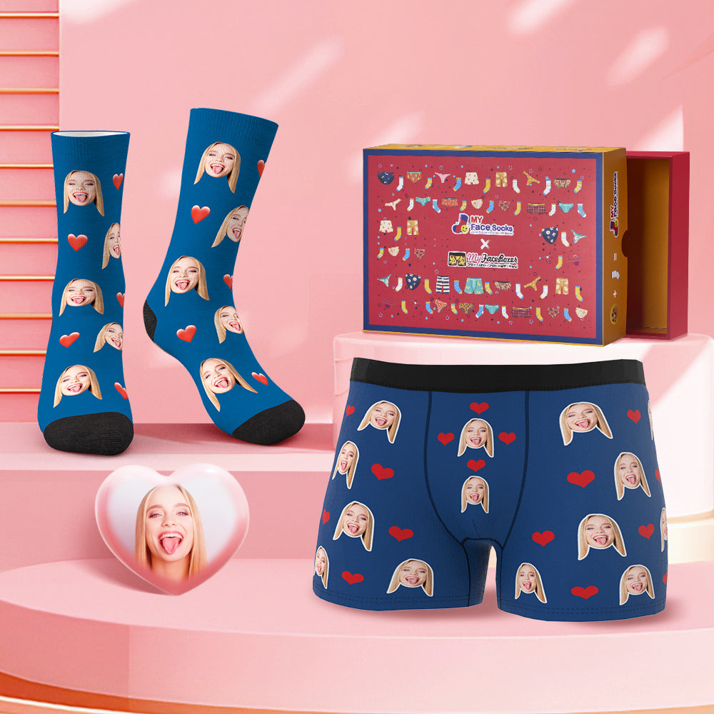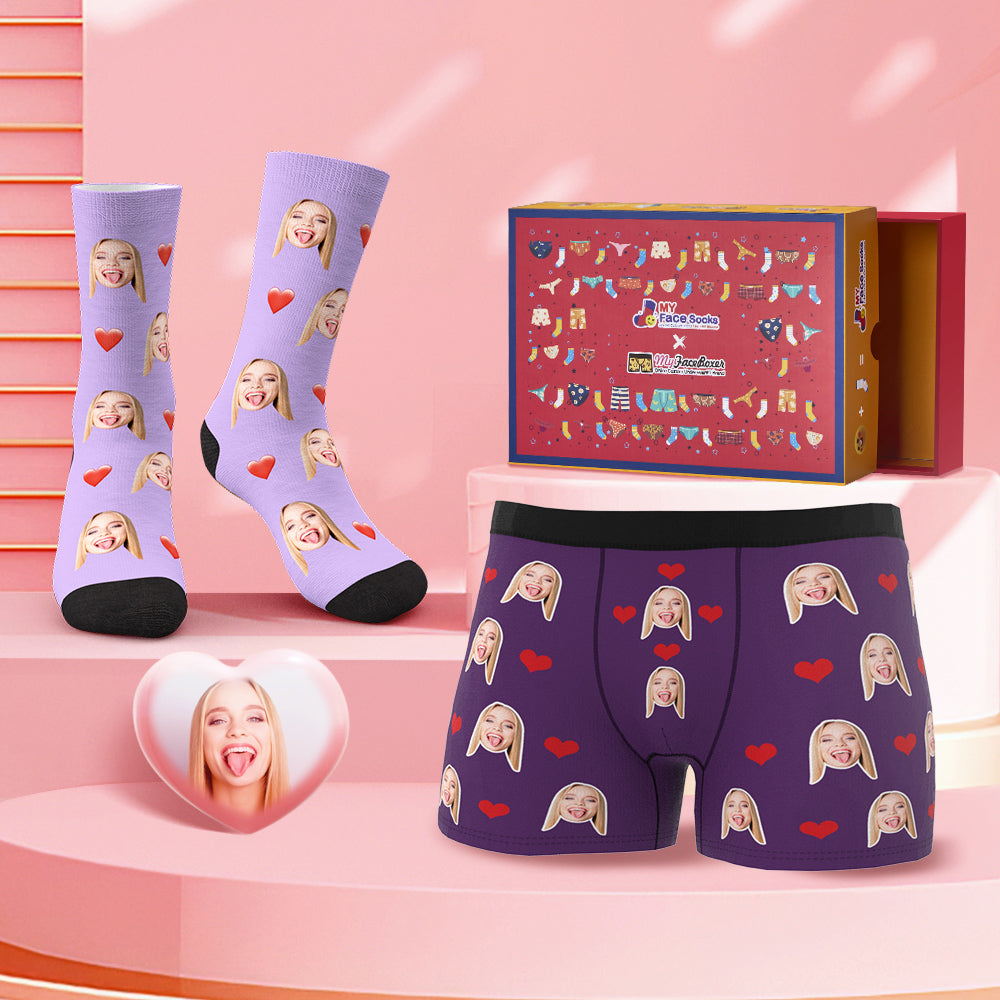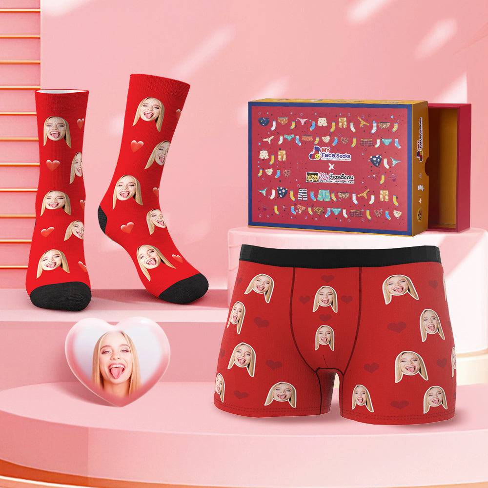 Gearróga agus Stocaí Boxer Aghaidh an Chustaim Red Love Heart Set Comhbhrandála Bronntanais Lá Vailintín